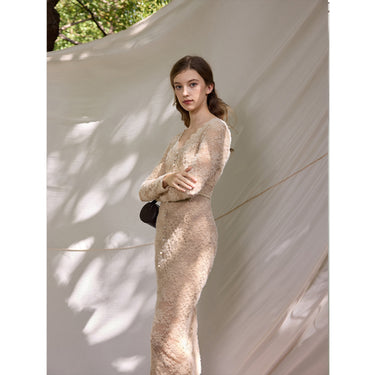 Curve-Hugging Elegance---Fitted silhouette and calf-length cut highlight feminine lines with refined sophistication.