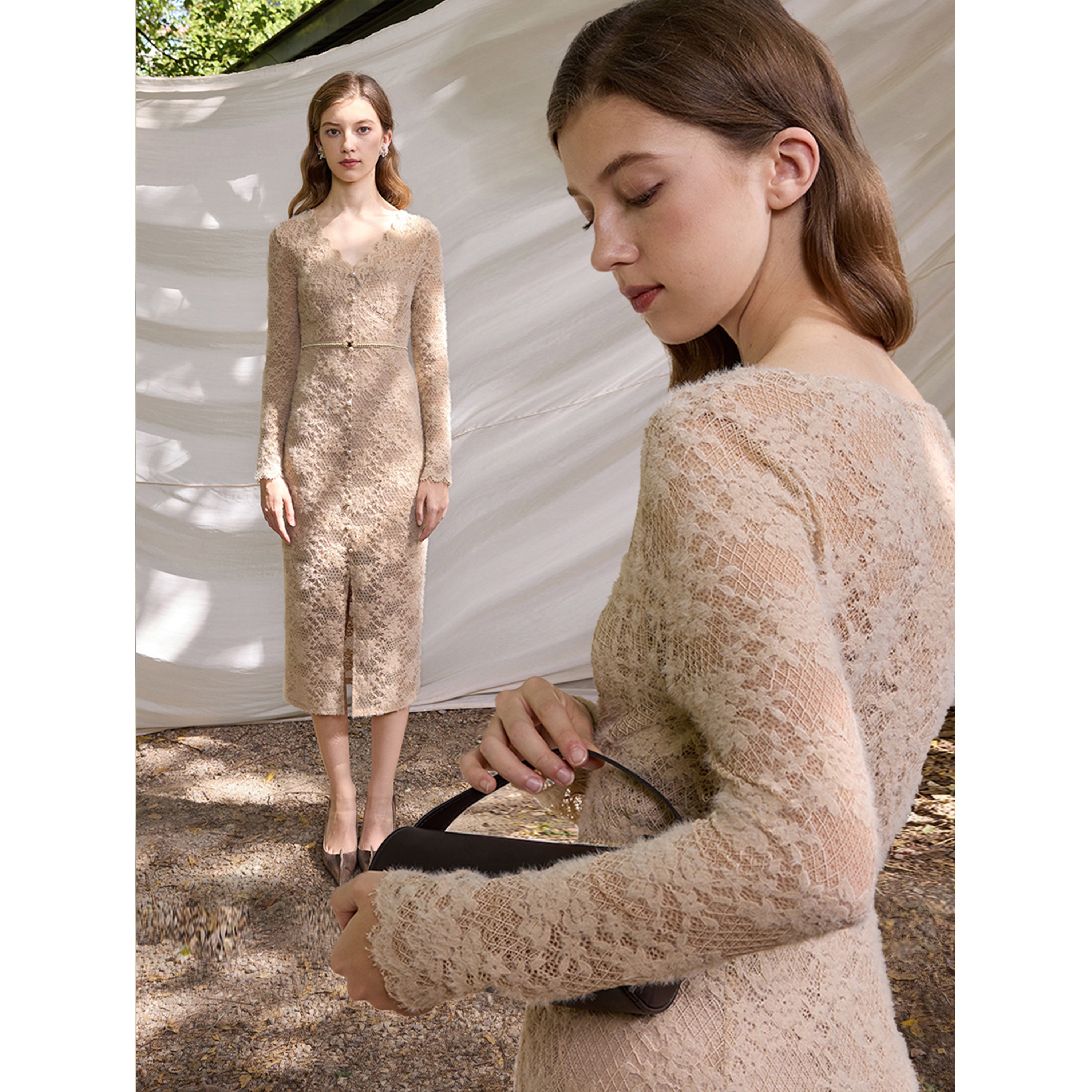Airy Feather-Lace Texture---Light, soft, and slightly fuzzy lace creates a dreamy, semi-sheer romantic look.