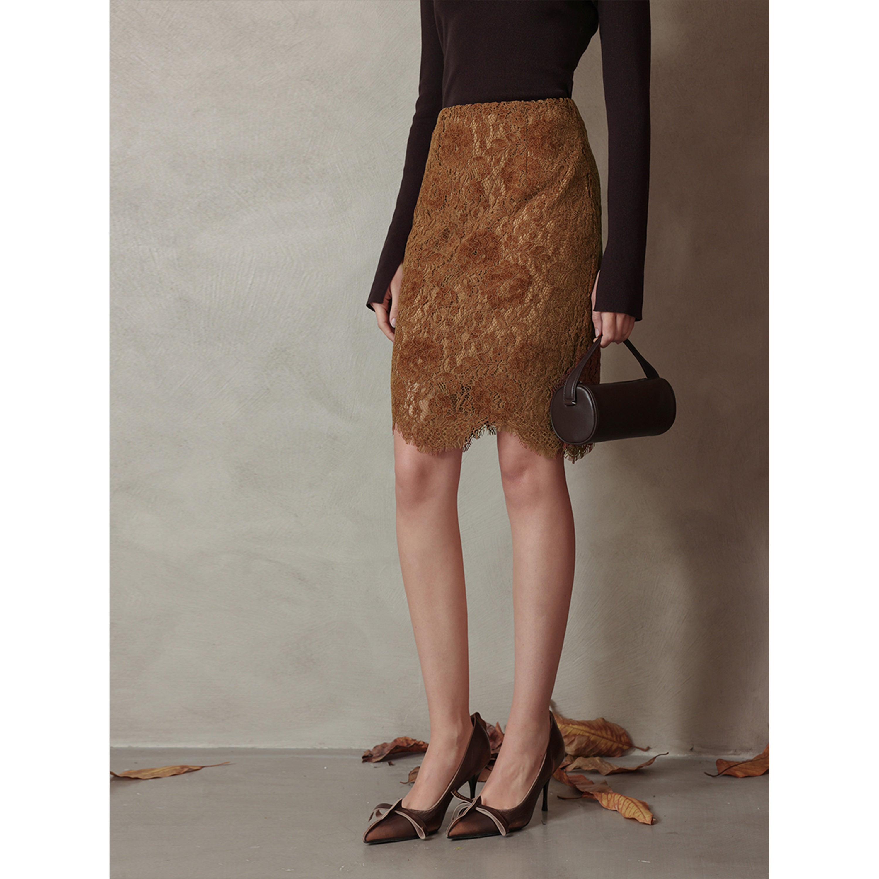 Flocked Lace Eyelash Trim Skirt