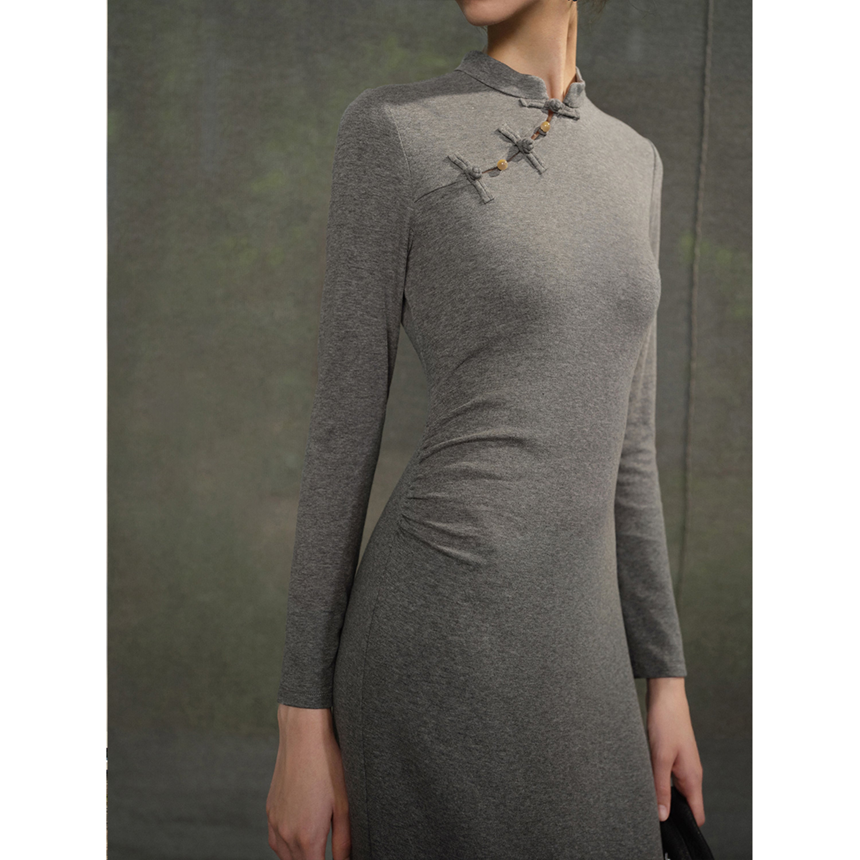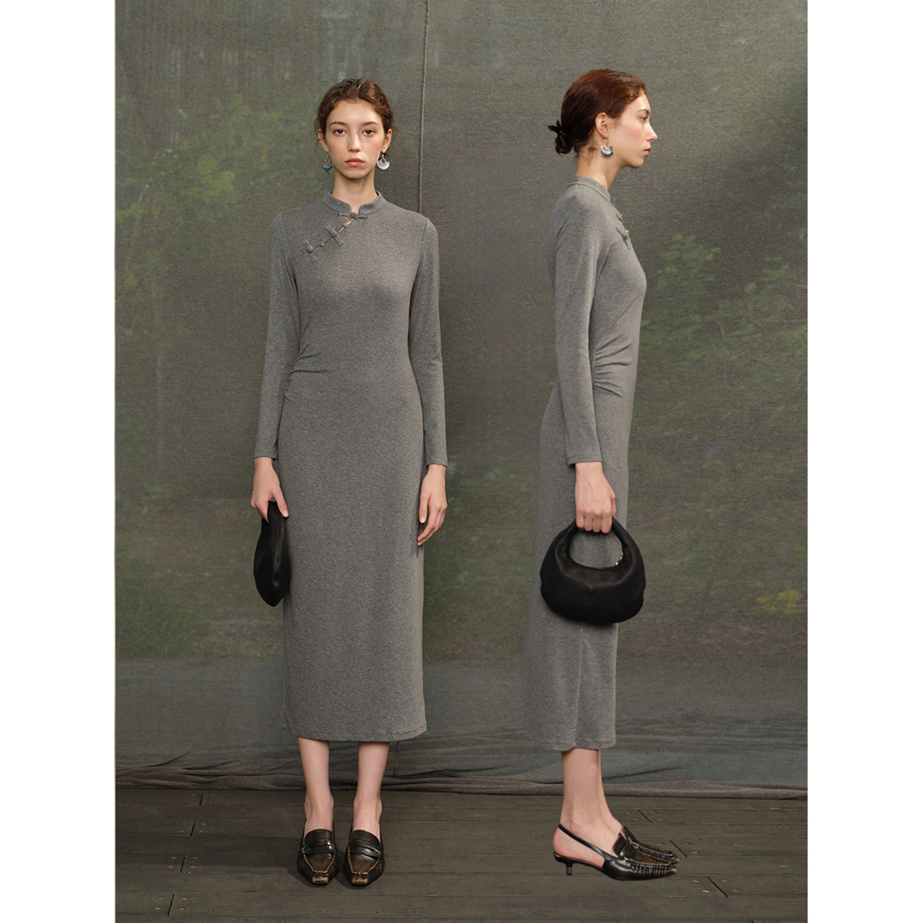 Slant Collar Design – Classic qipao-inspired stand collar with a graceful diagonal closure that elongates the neckline with vintage charm.