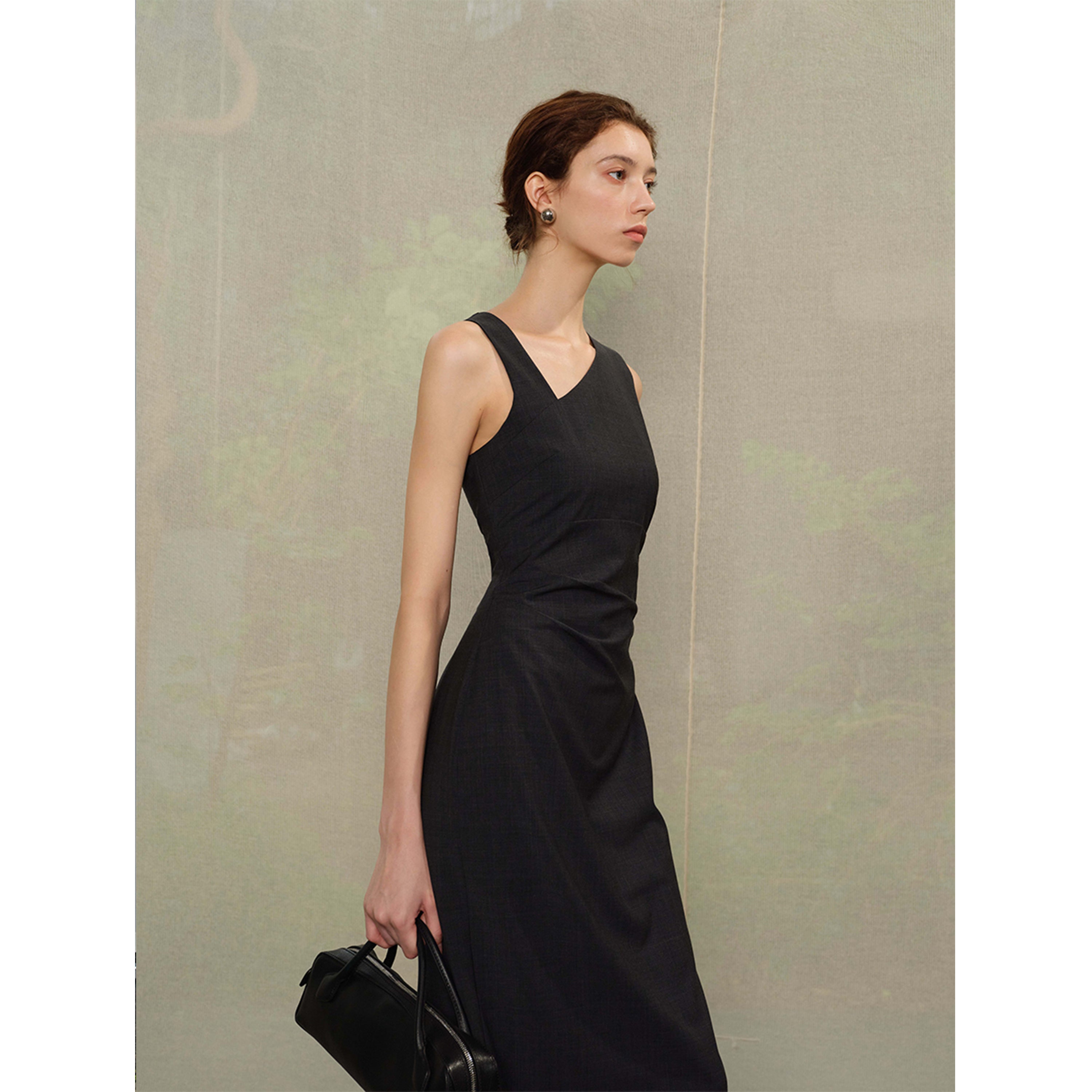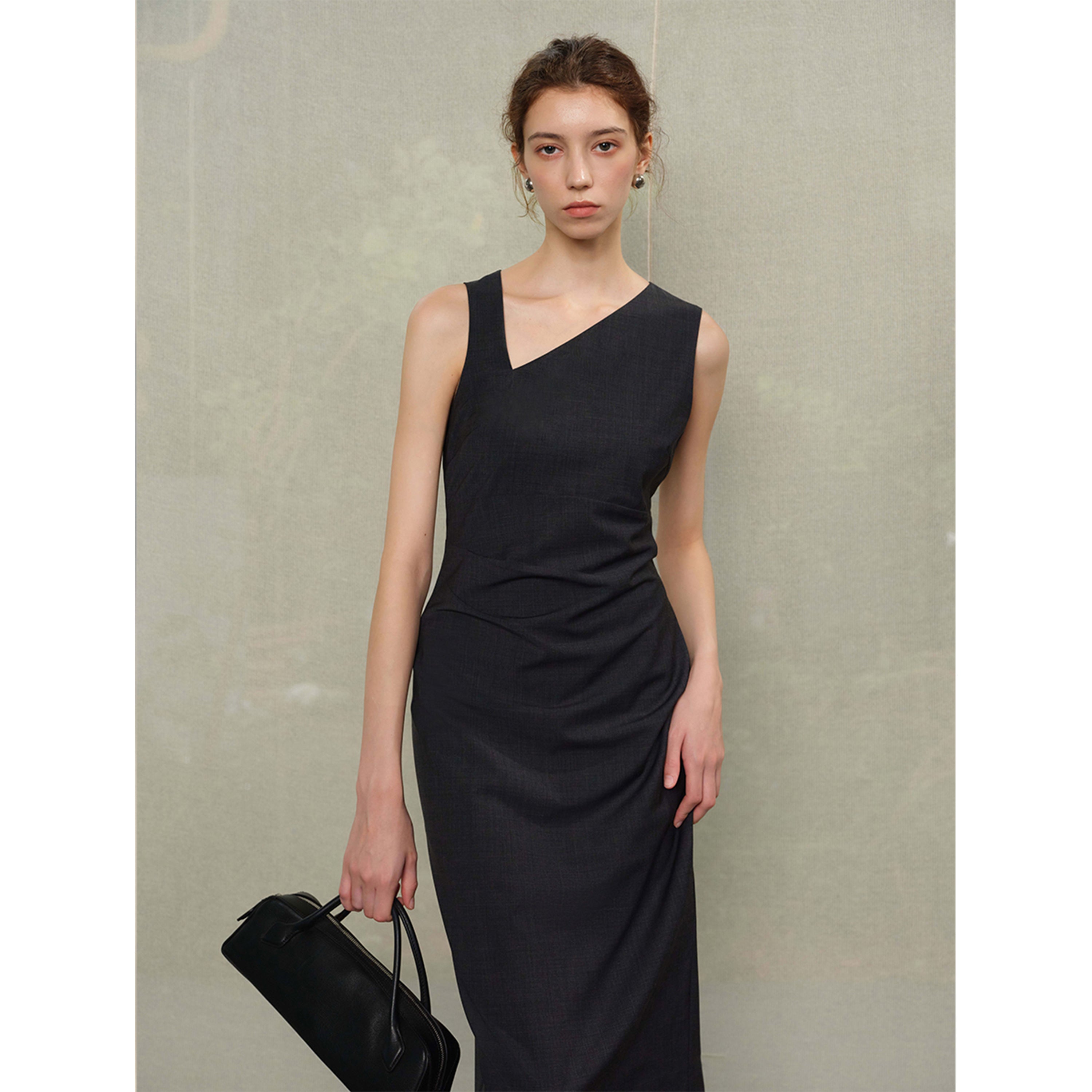 Sleeveless Asym-V Neck Dress