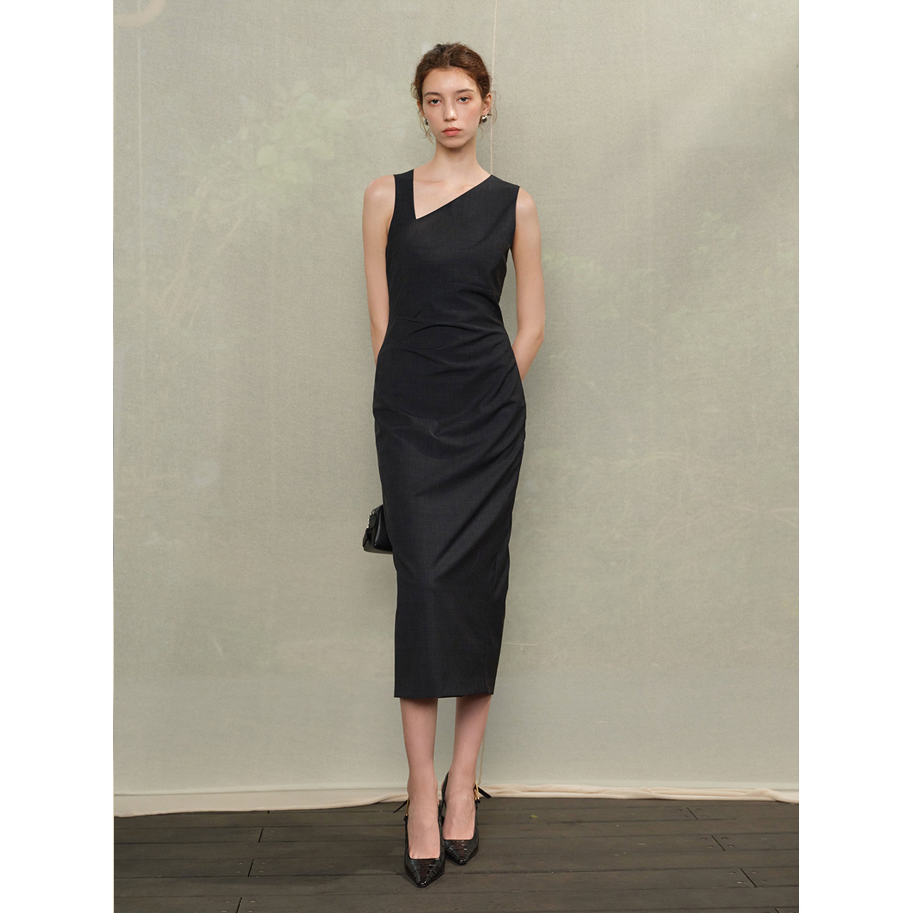 Figure-Flattering – Slim silhouette with asymmetric V-neck enhances lines and creates elegant appeal.