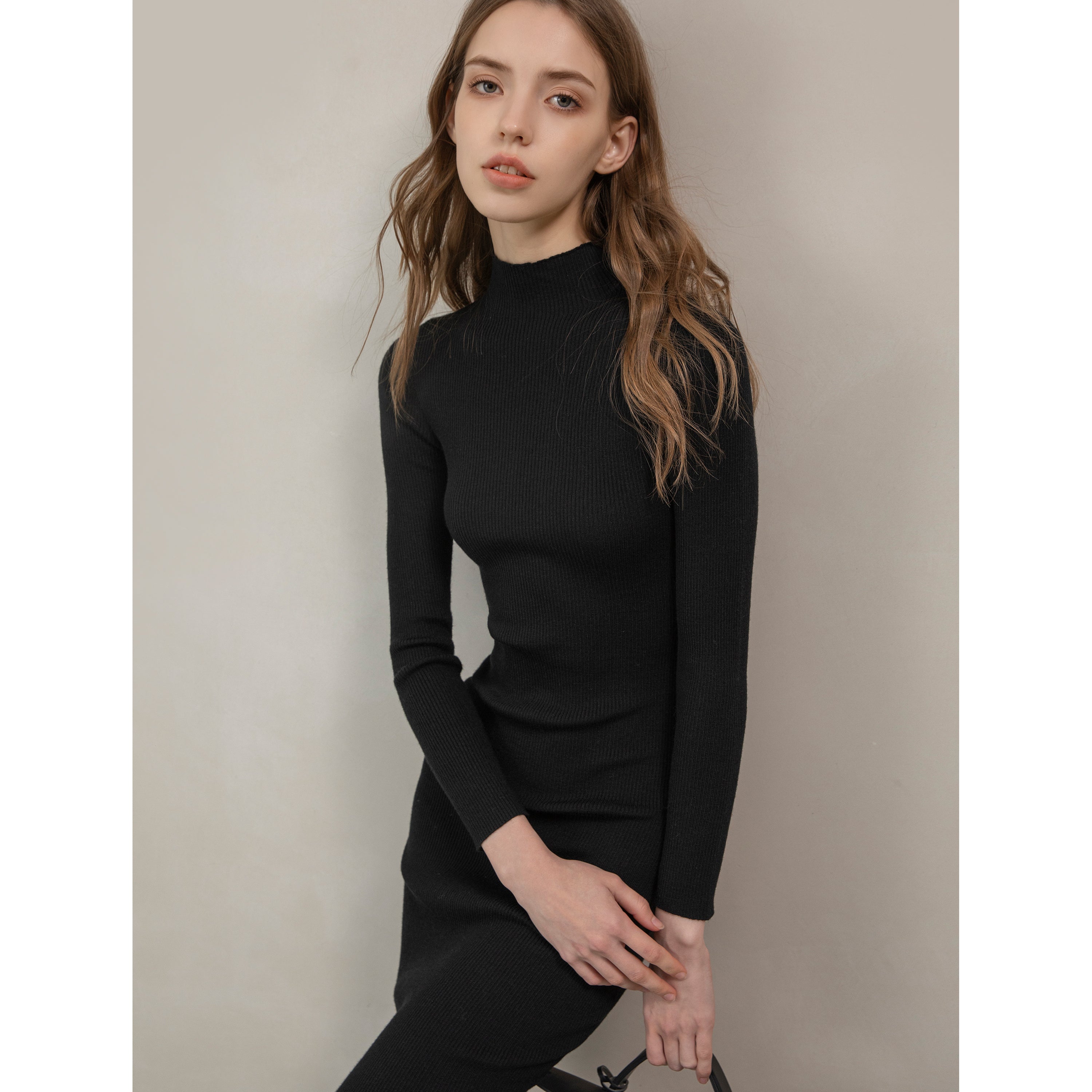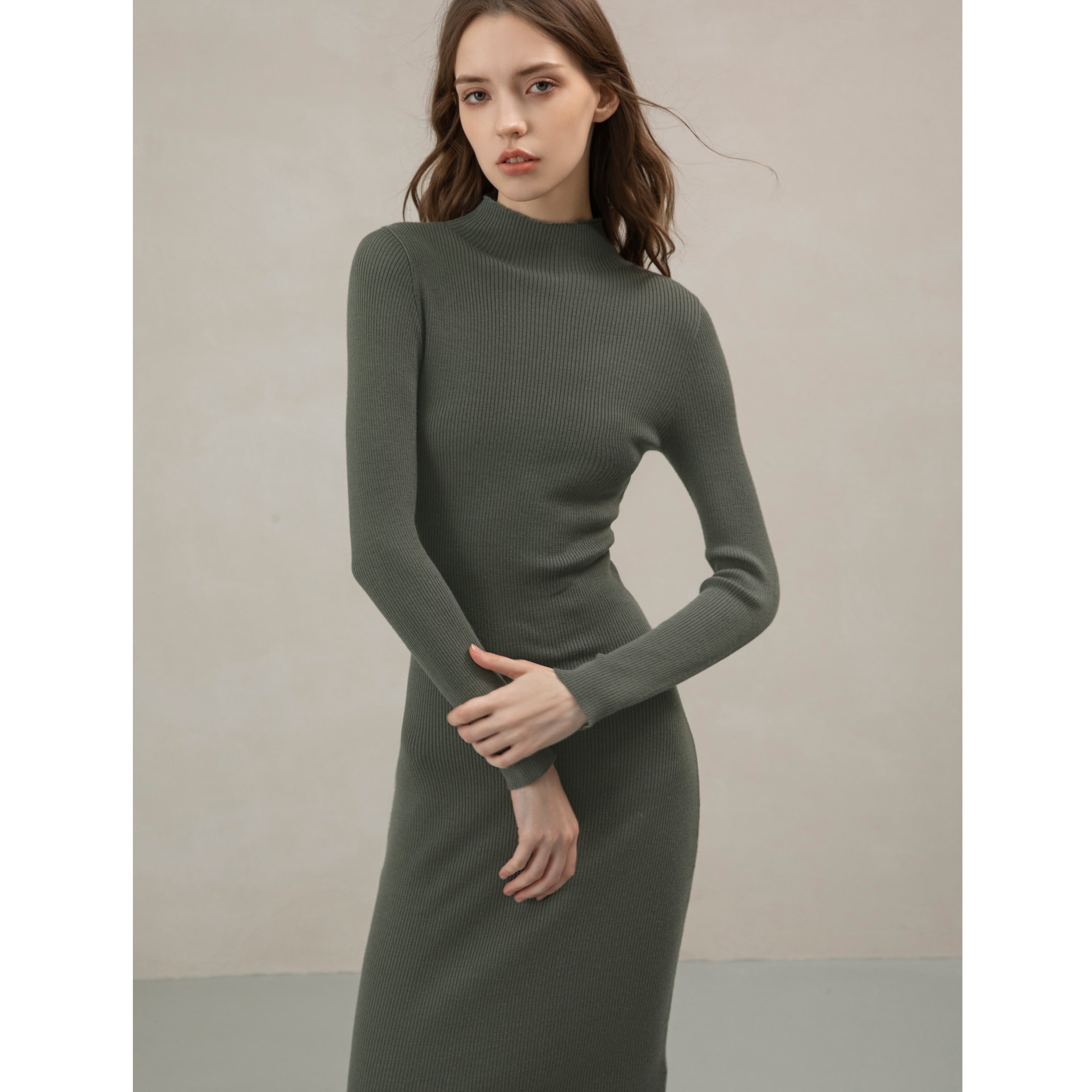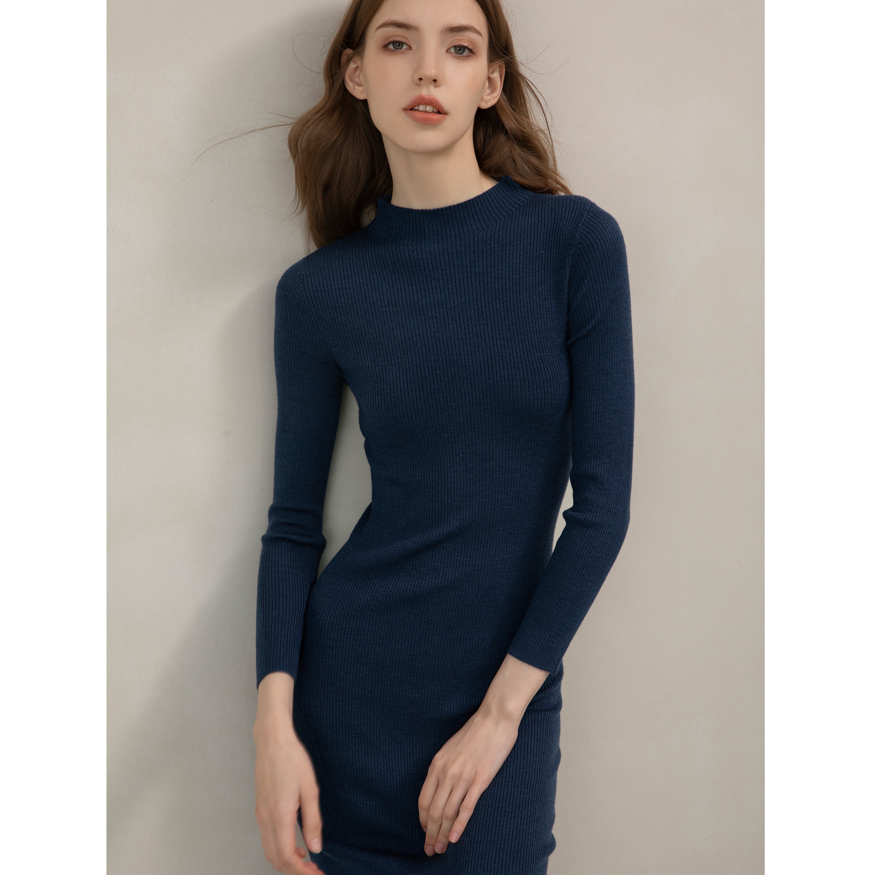 Merino Mock Turtleneck Knit Dress