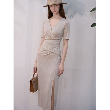 Women's V-Neck Cinched Waist Dress