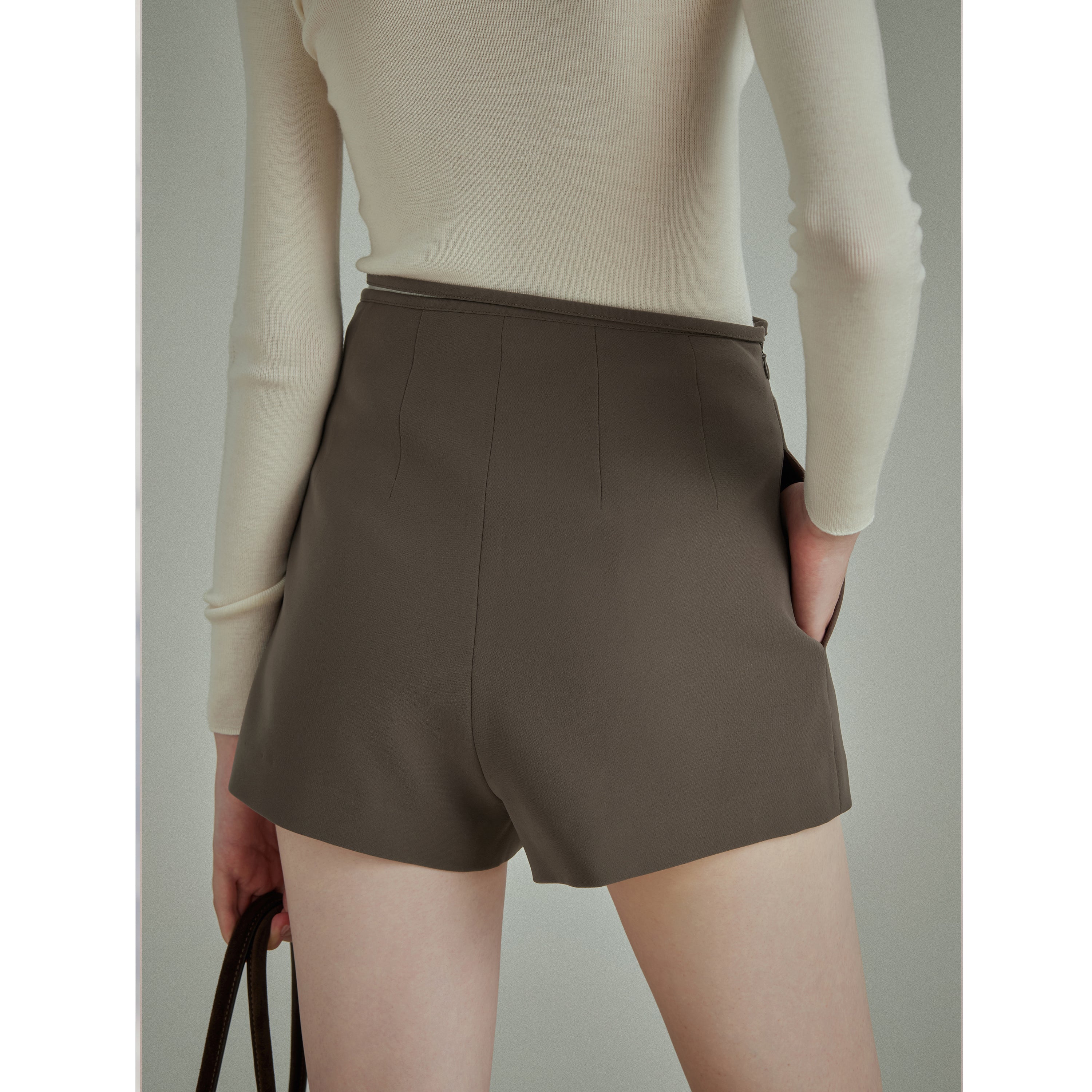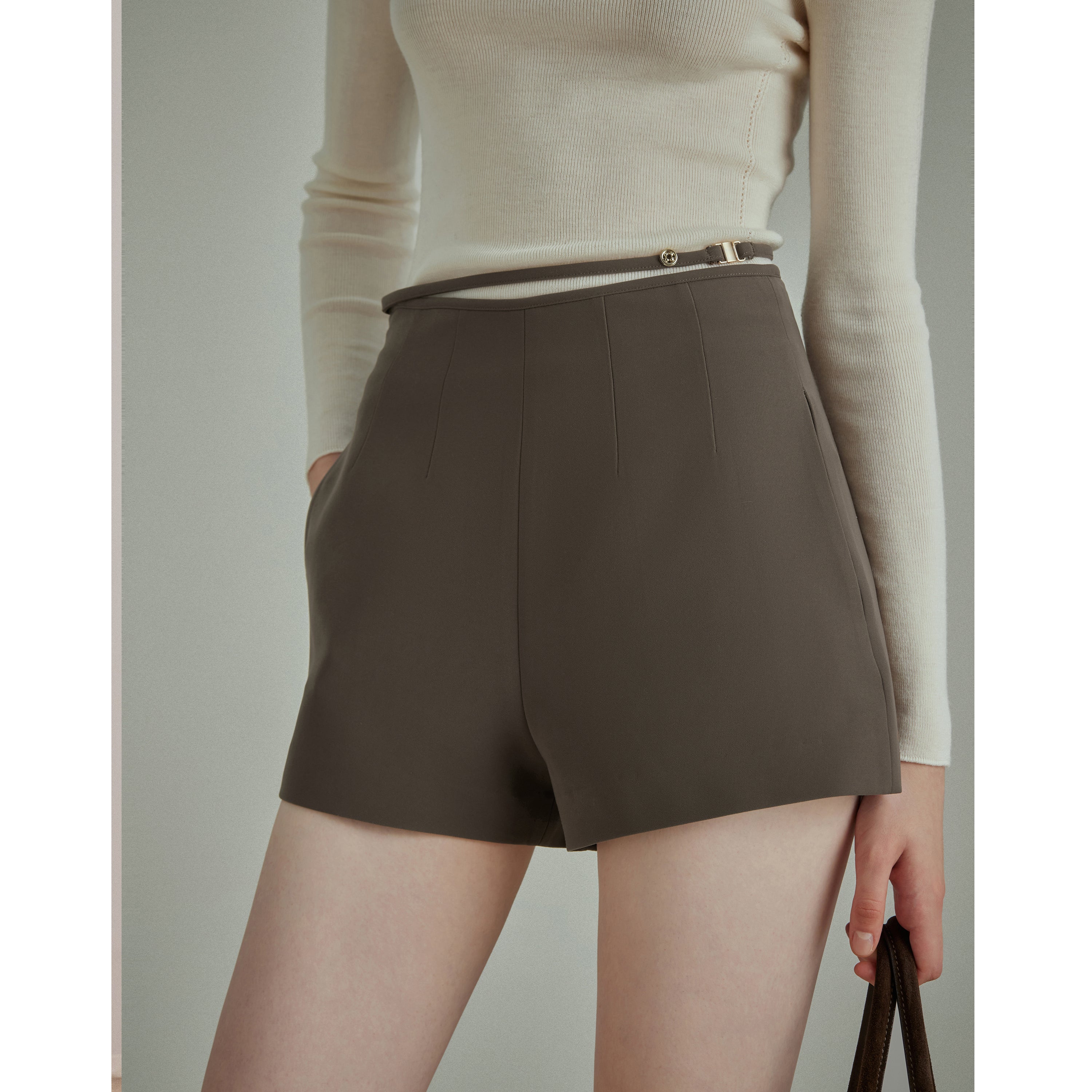 Versatile Styling with a Unique Cut – The subtly slanted hem sets these shorts apart from conventional styles, offering a modern, fashion-forward edge. The tailored cut elongates the legs, making it an ideal choice for chic everyday outfits.