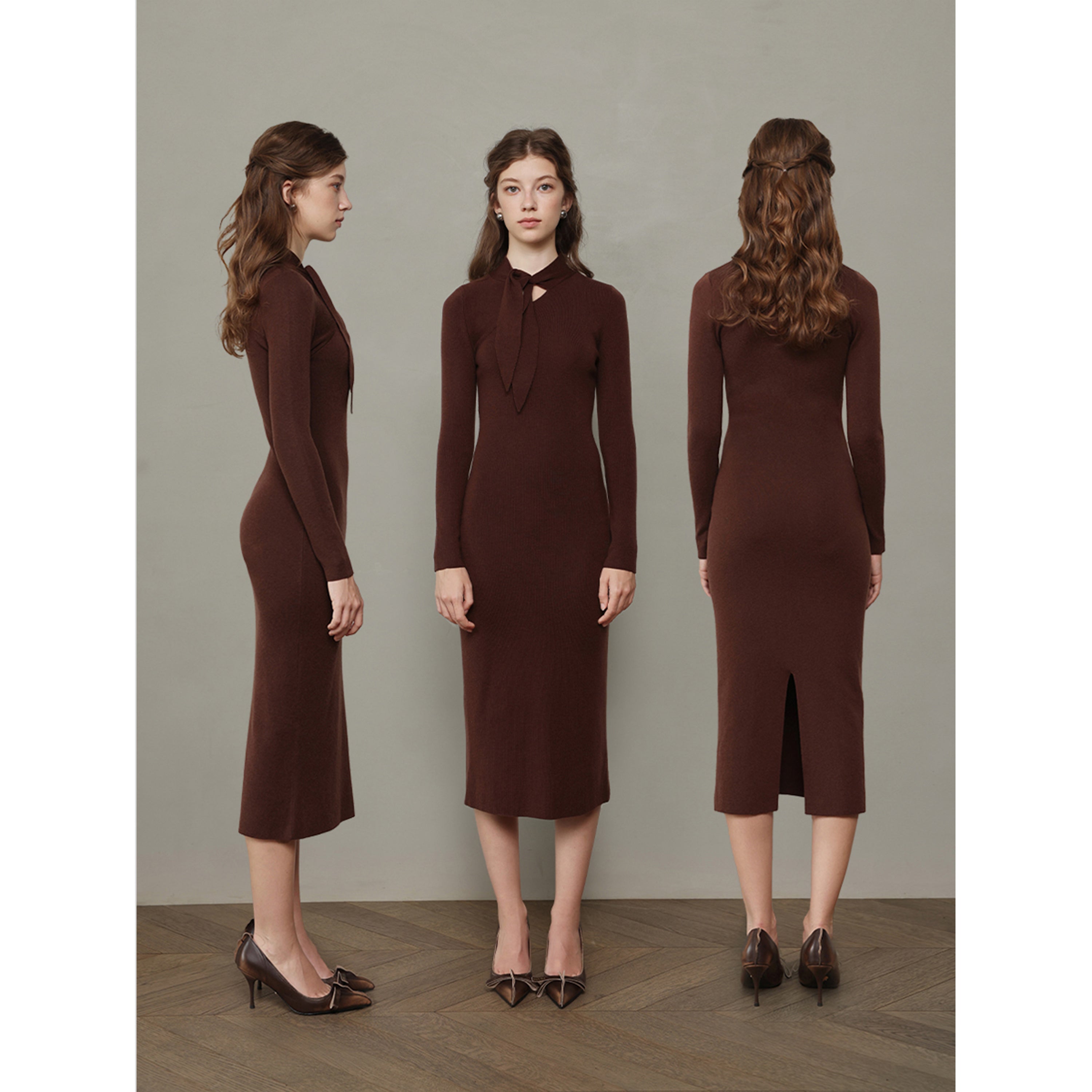 Flattering Cut – Tailored to hug the silhouette while allowing comfort; long sleeves and mid-length skirt enhance proportion.