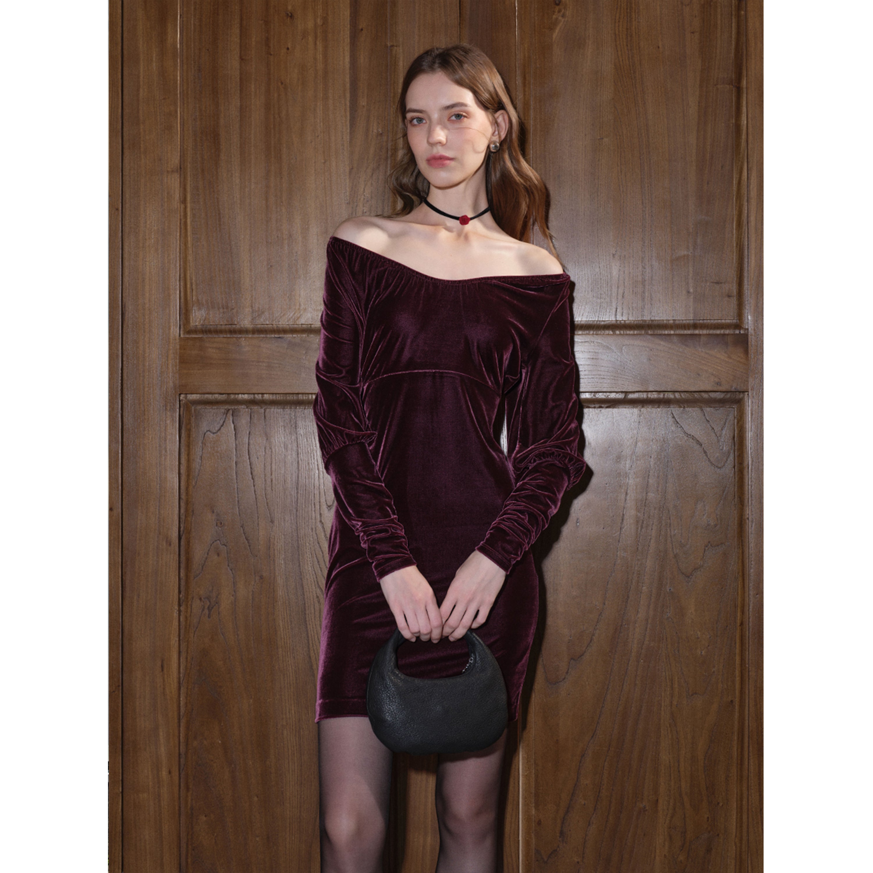Stretch Velvet V-Neck Bodycon Dress
