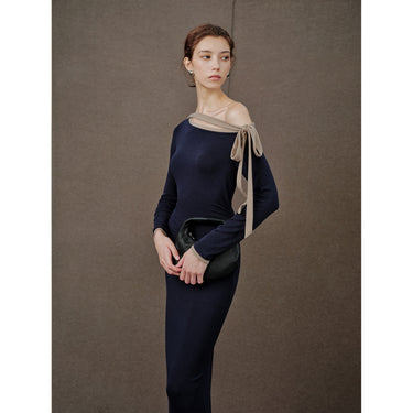 Retro Color-Block Tie Knit Dress