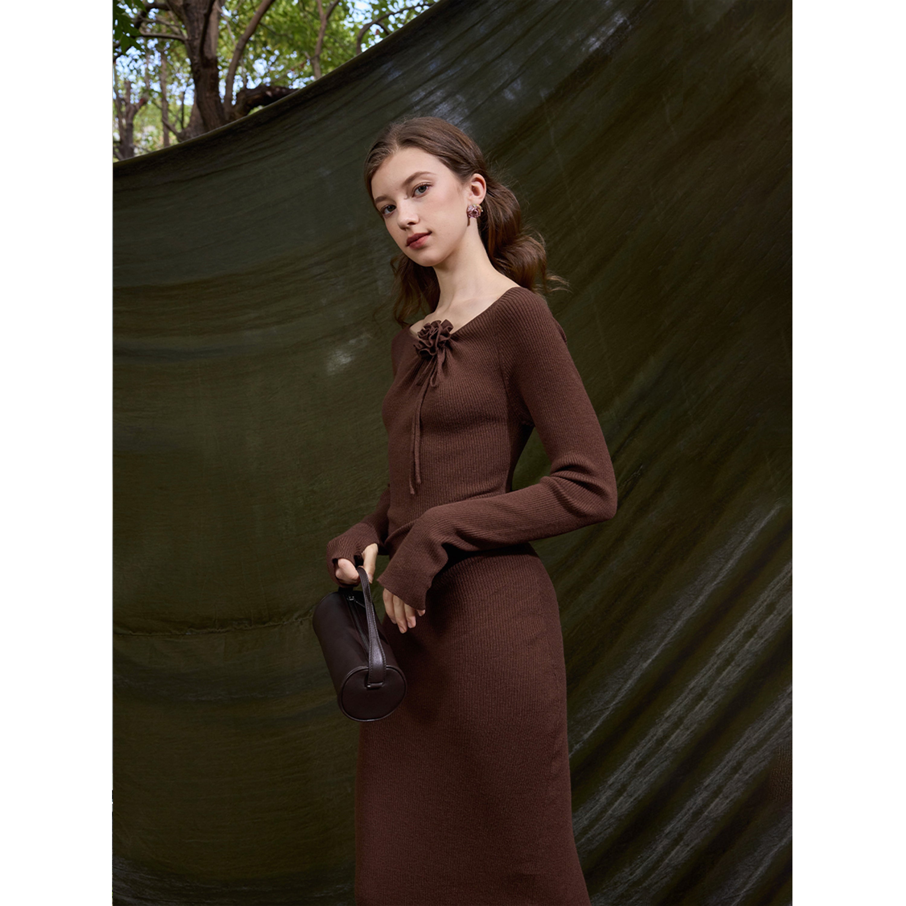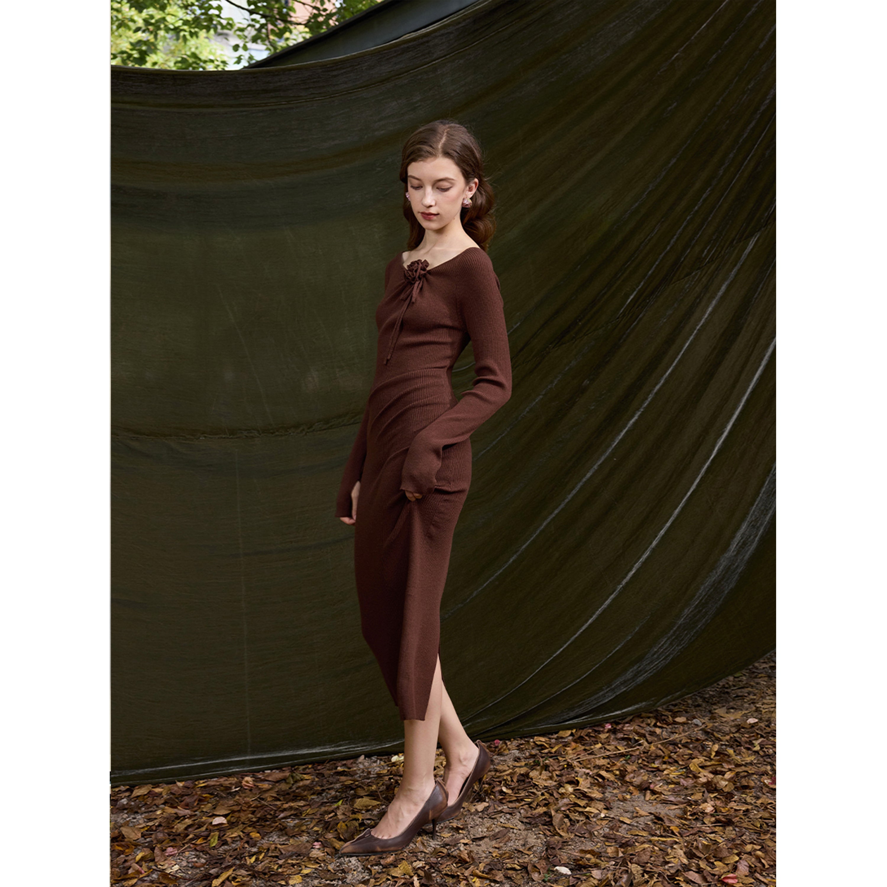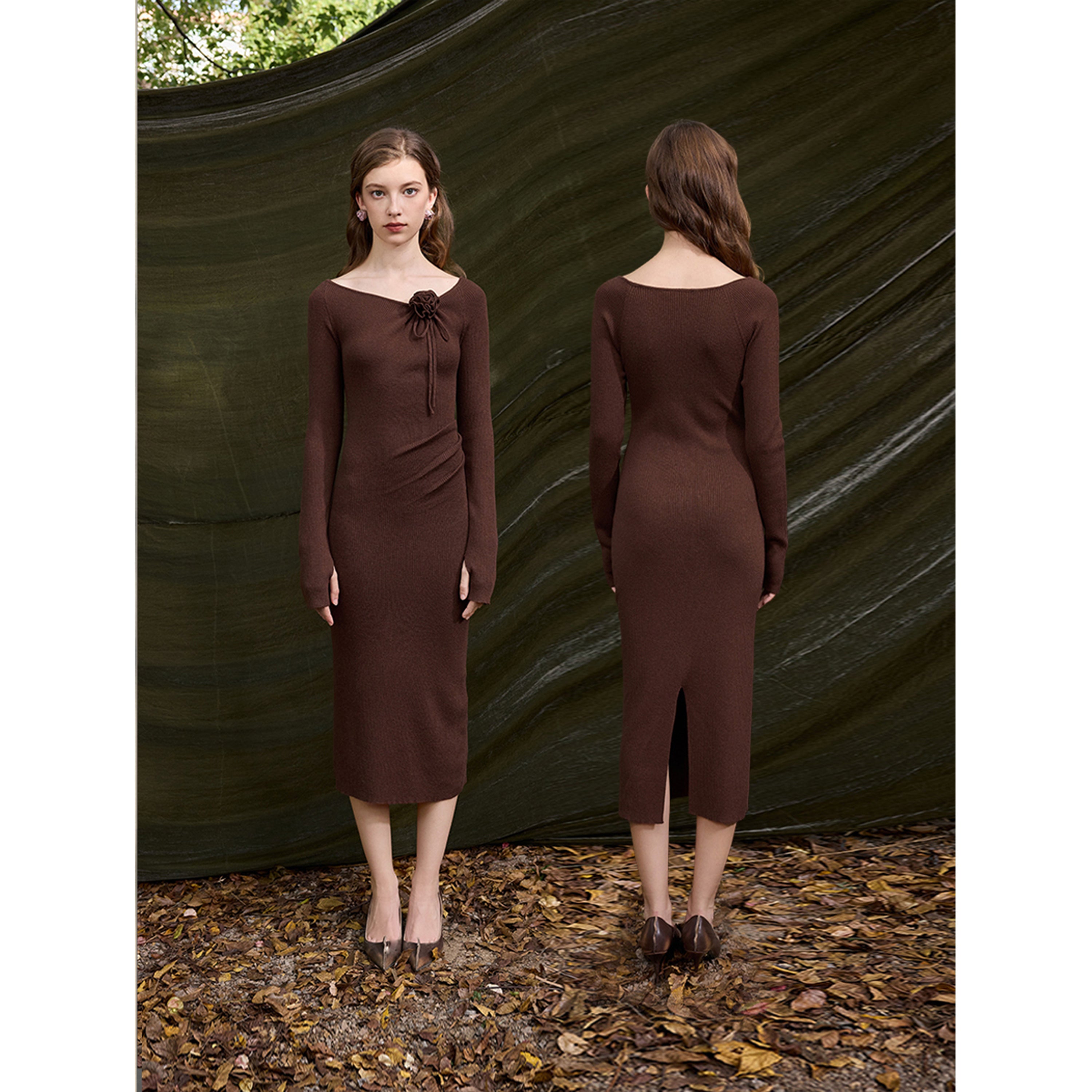 Textured Rib Structure – The vertical rib knit elongates the figure, adding refined depth and sophistication.
