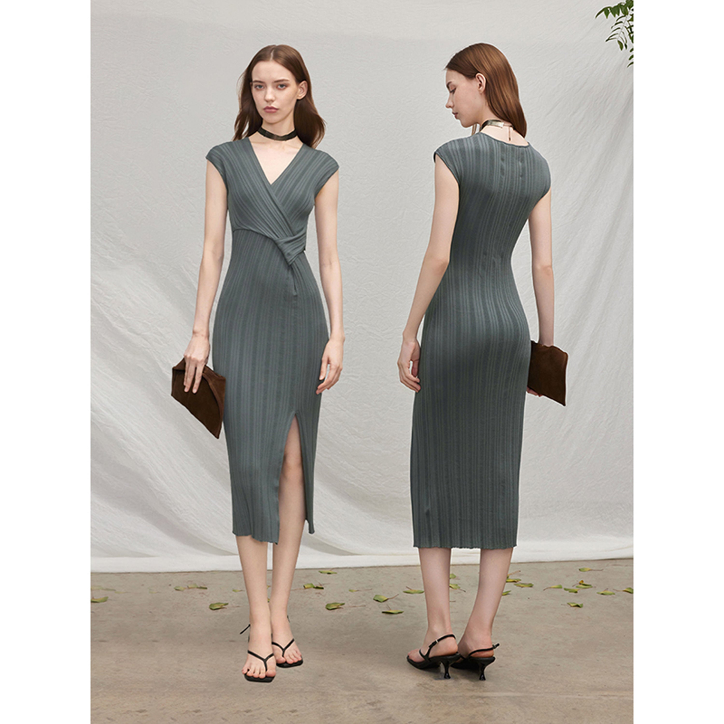 Elegant V‑Neck & Cross Waist:Flowing V-neck and crossover waist panel ties softly at the side, accentuating curves and slimming the silhouette—ideal for the date night or graduation guest outfit.