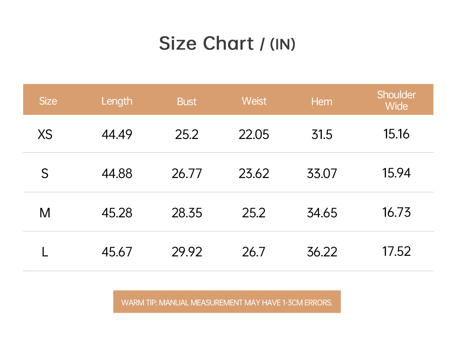 | Size | Bust (Chest) | Waist | Hip | Bust (Chest) | Waist | Hip |