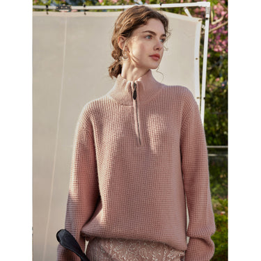 Cozy Style Lapel Zip Half Placket Knitted Sweater