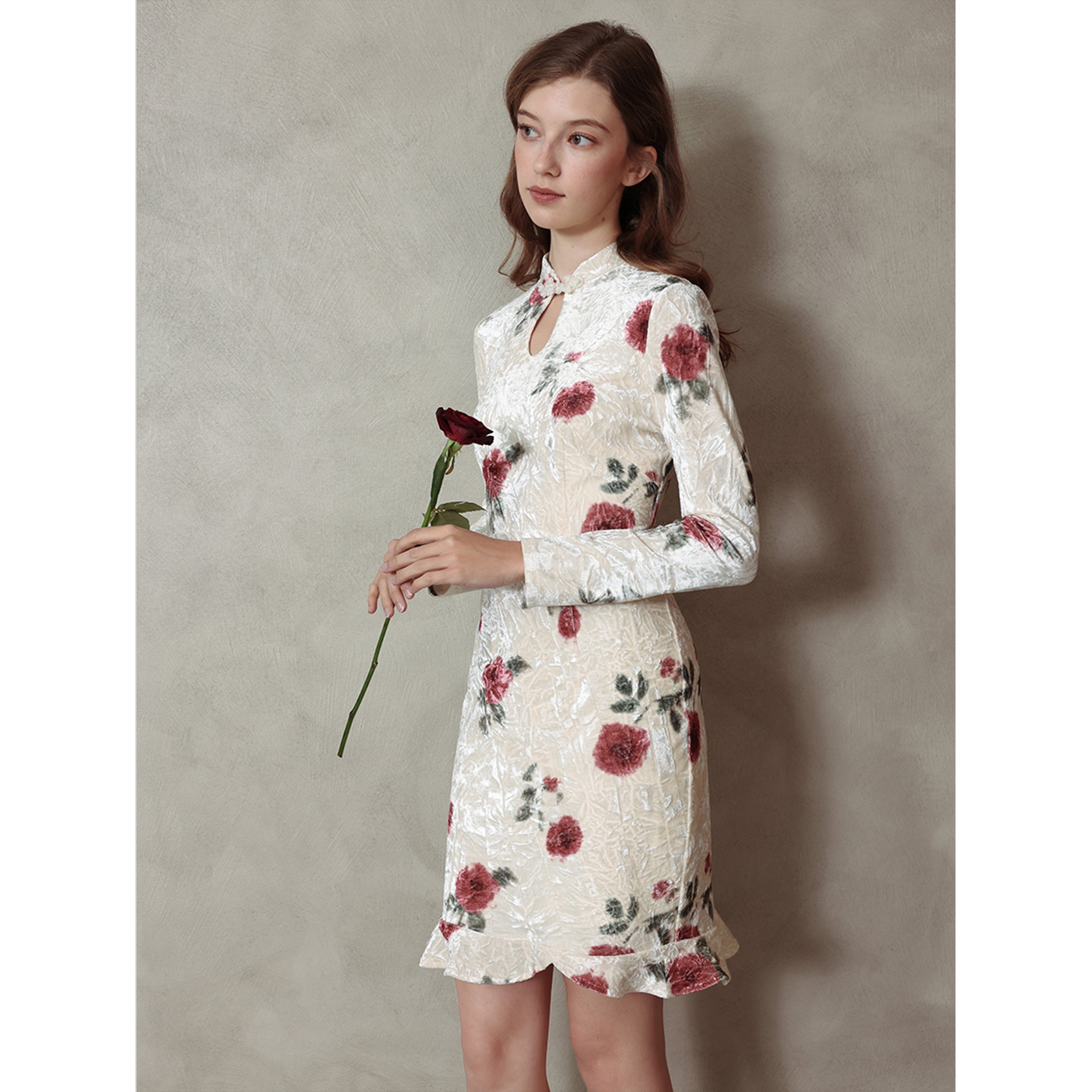 Modern Oriental Elegance — An updated mandarin collar with subtle cutout blends classic charm and chic style.