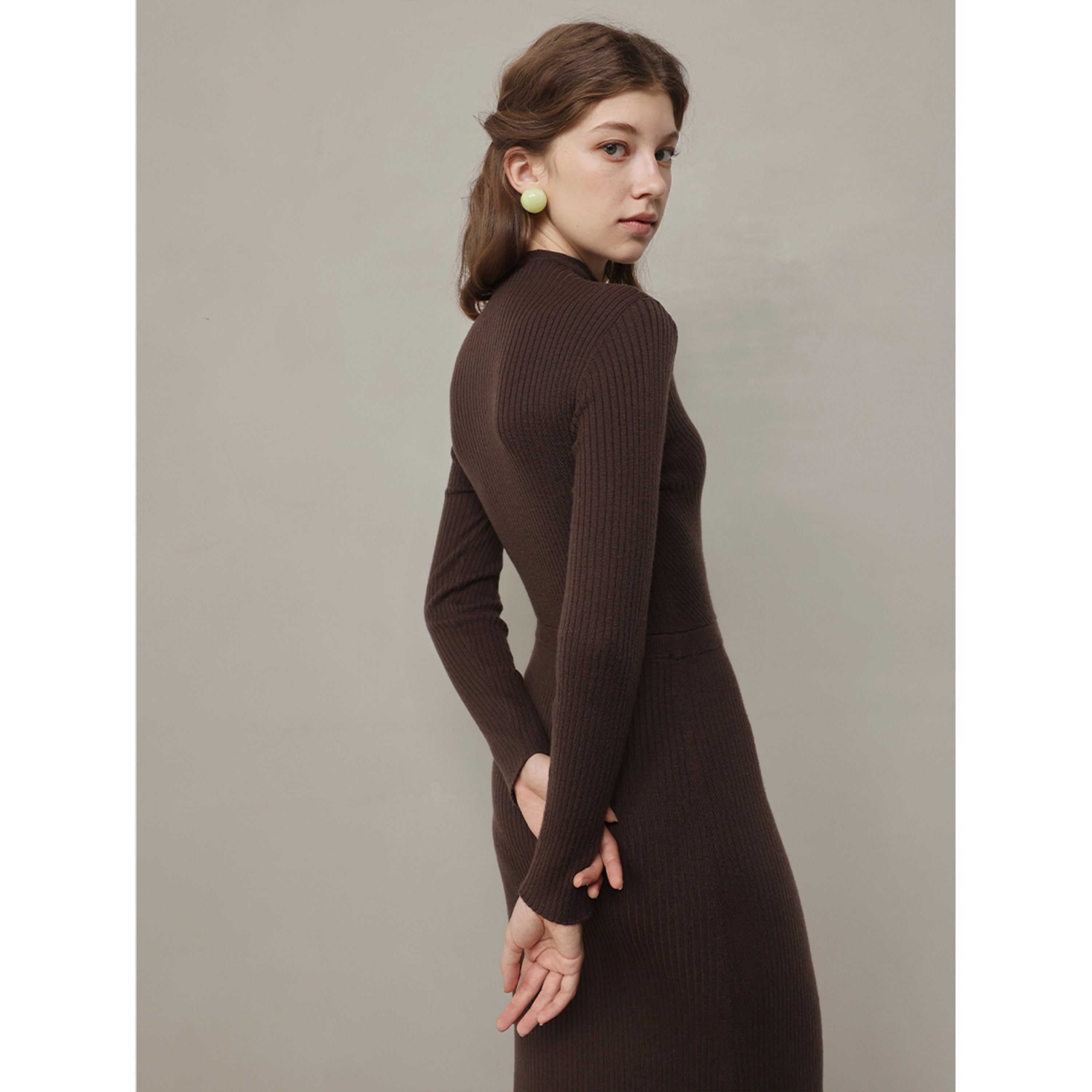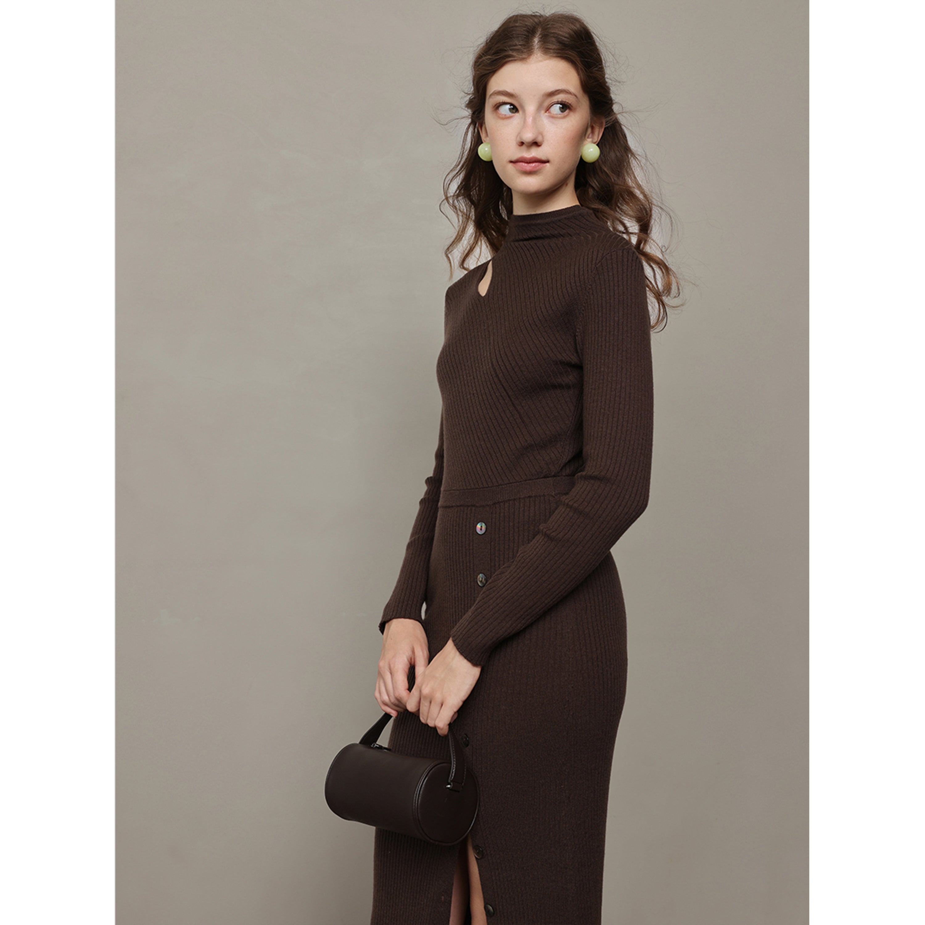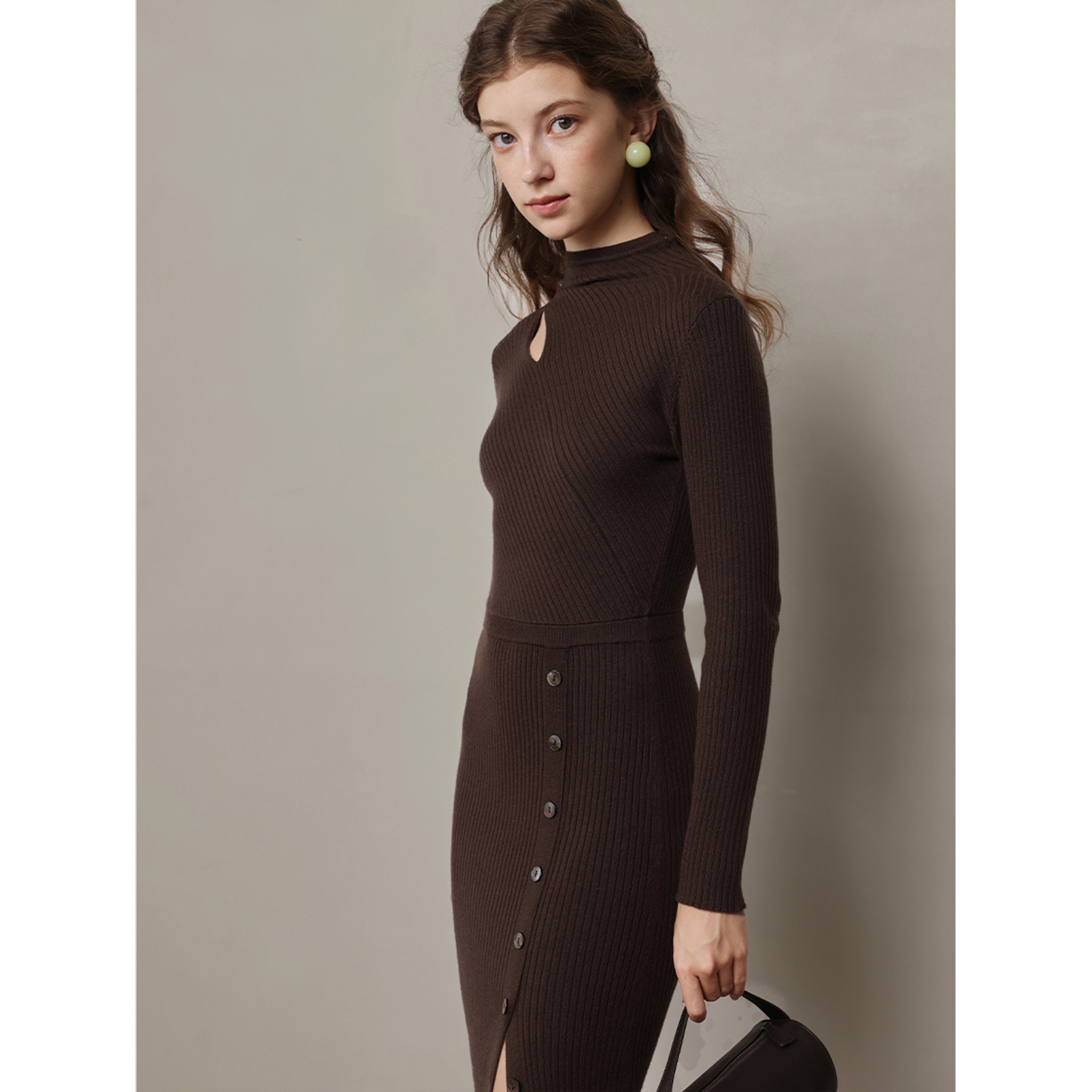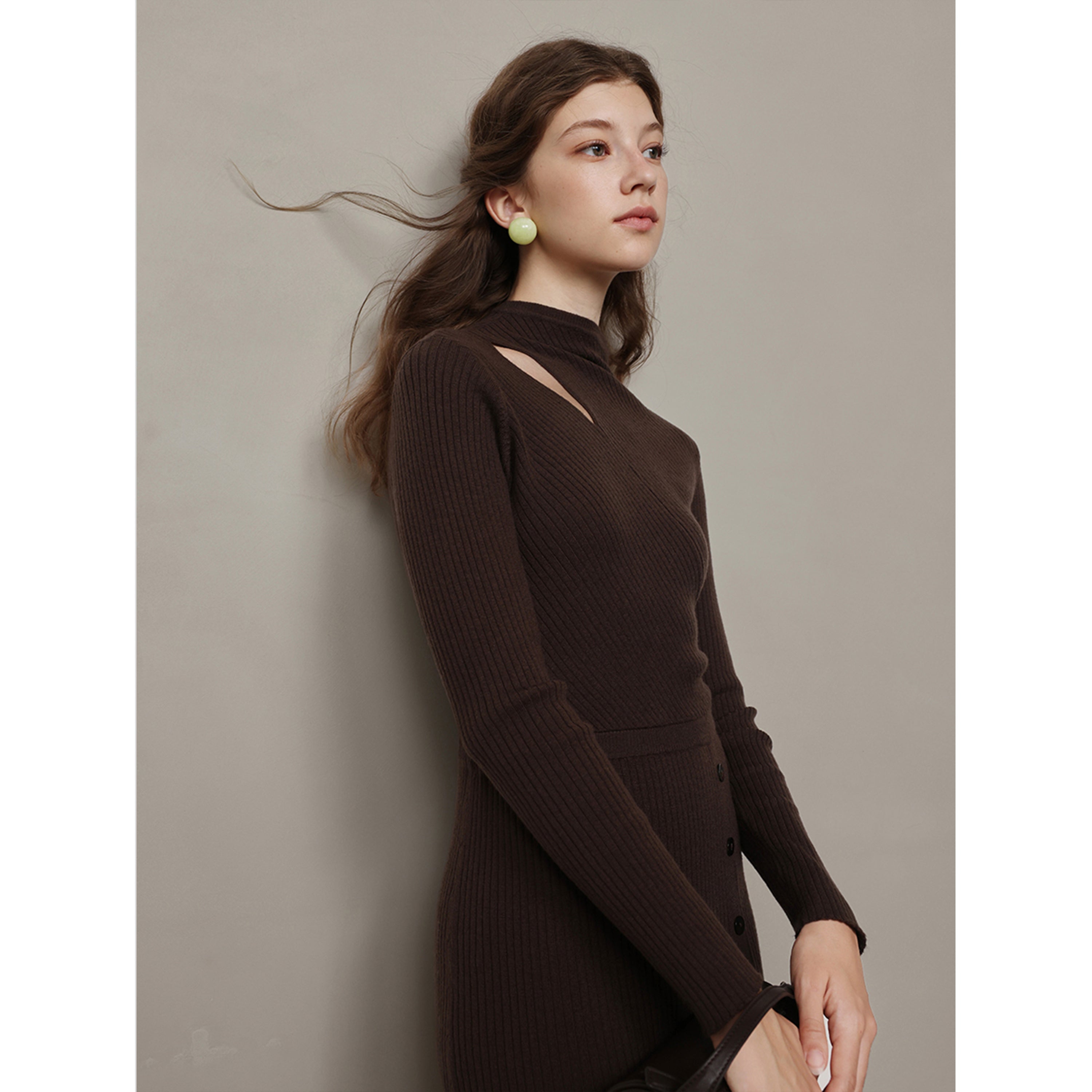 Fine Wool Knit Dress with Elegant Cutout Detail