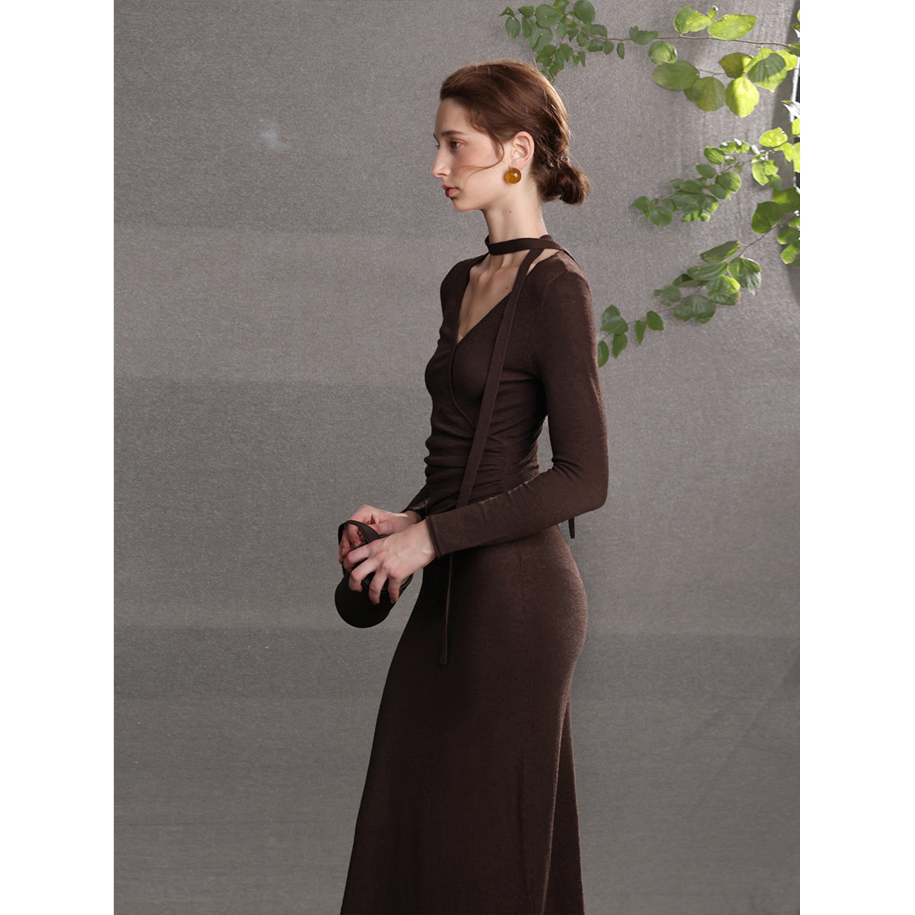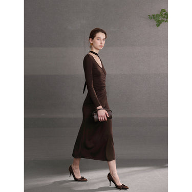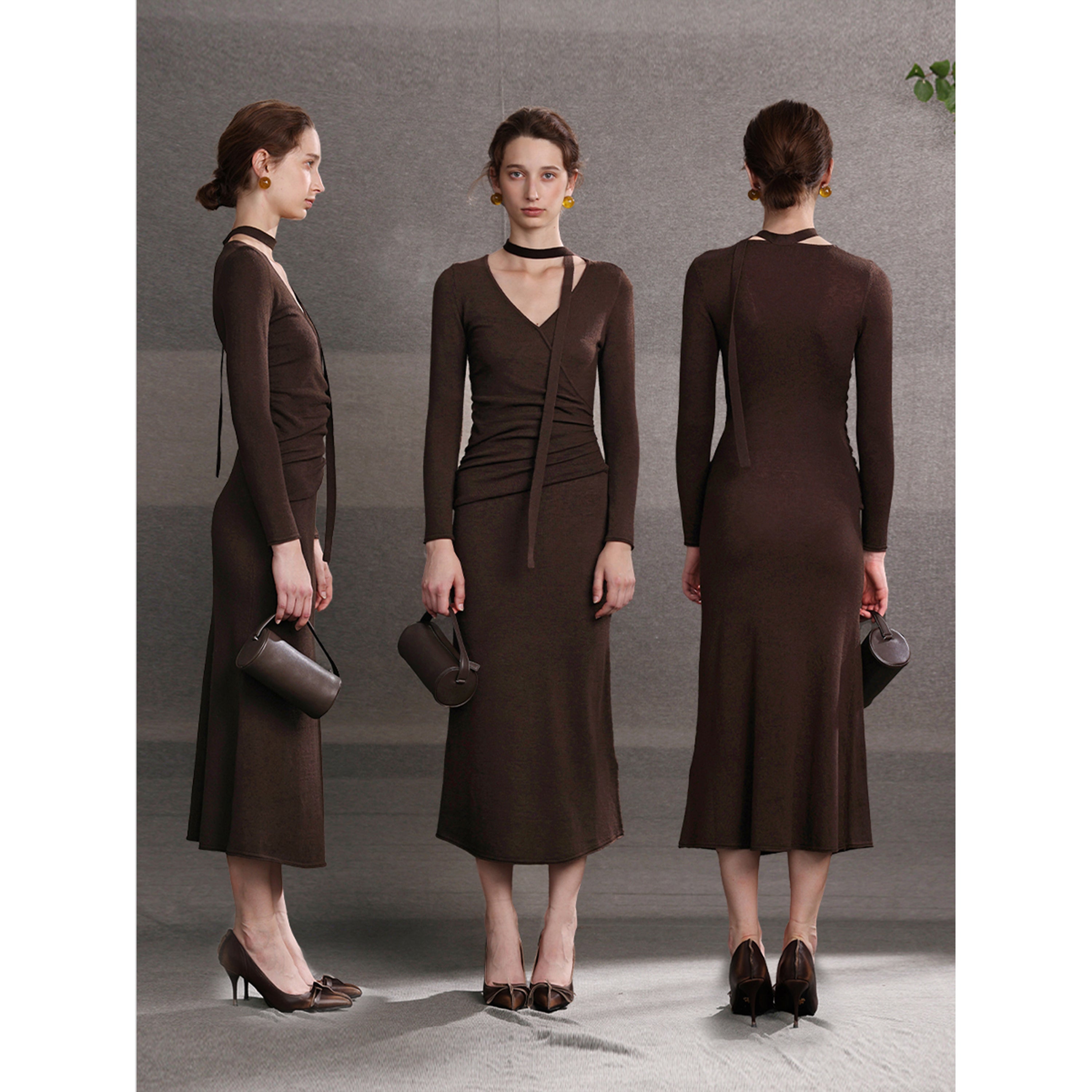 Ribbon Accent Design – Features a flowing tie detail at the neckline for added elegance and versatile styling options.