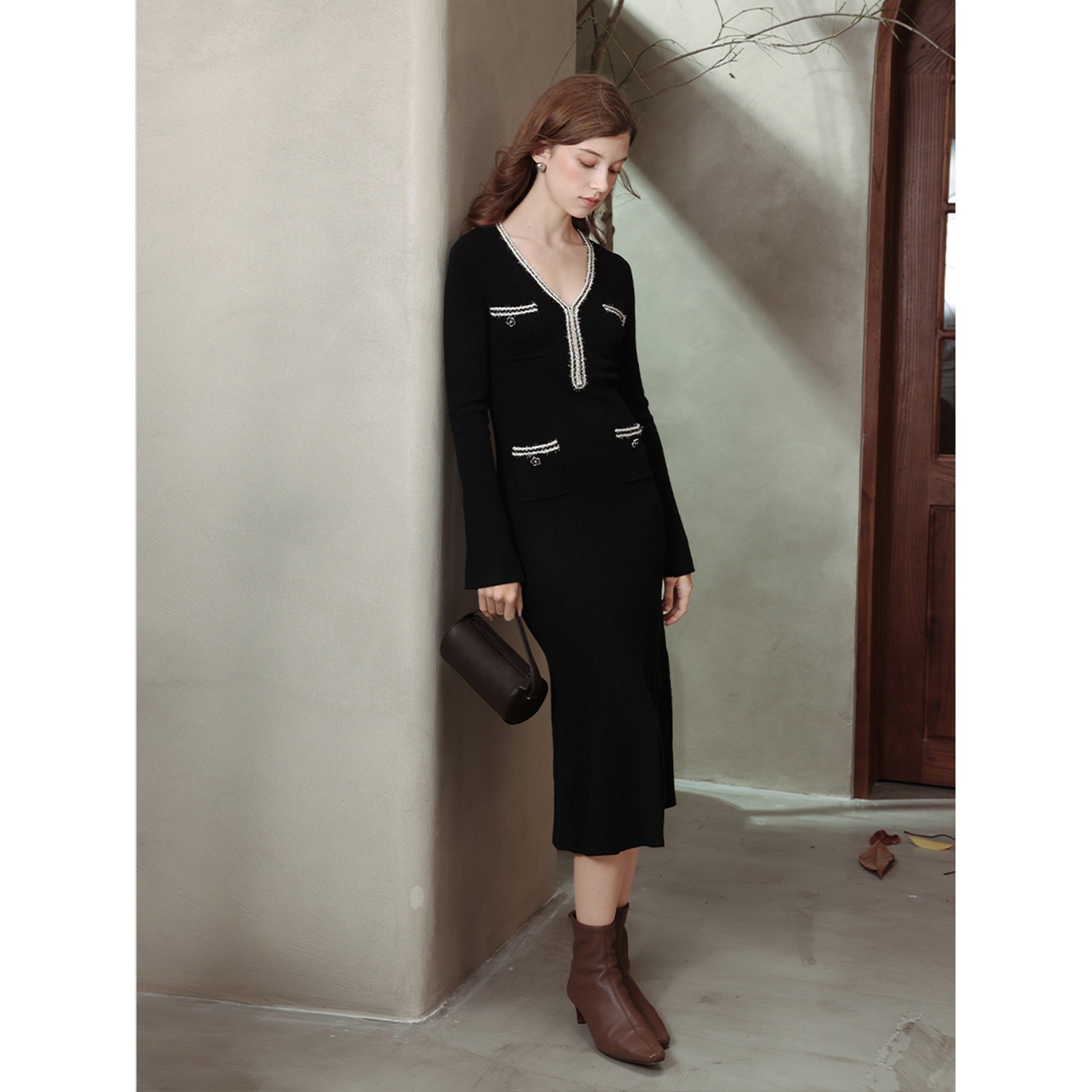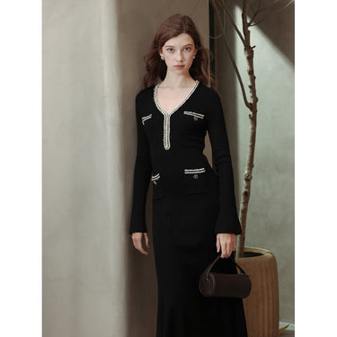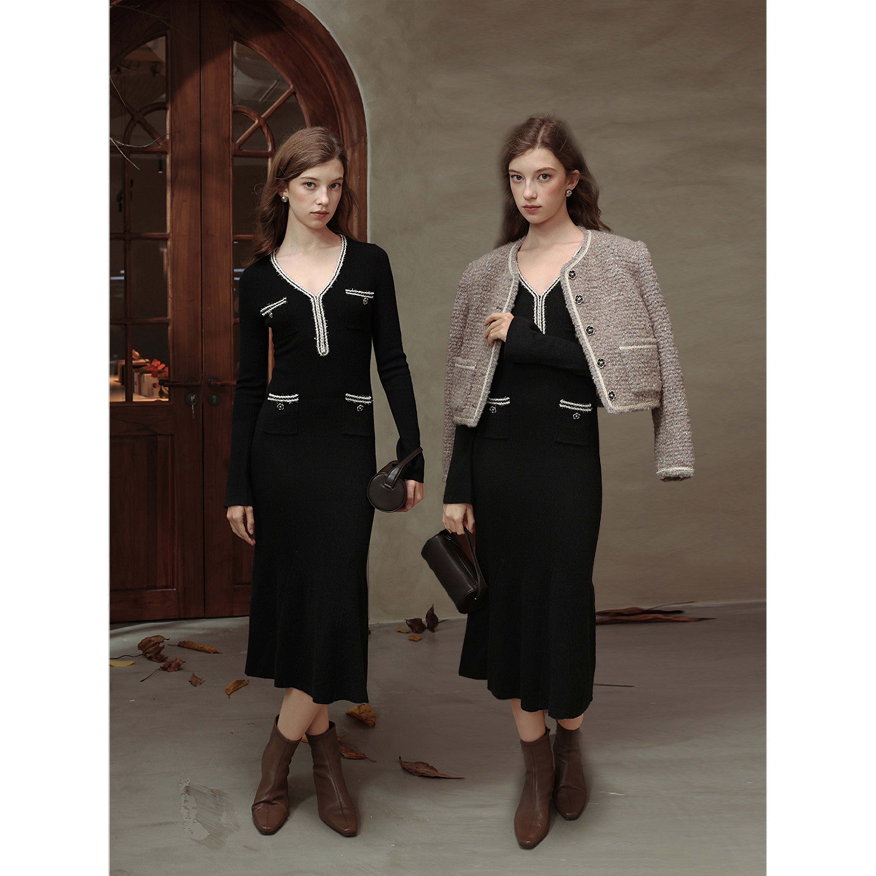 Chic Contrast Detailing — V-neck trimmed with contrast woven tape adds sophistication and a touch of Parisian charm.