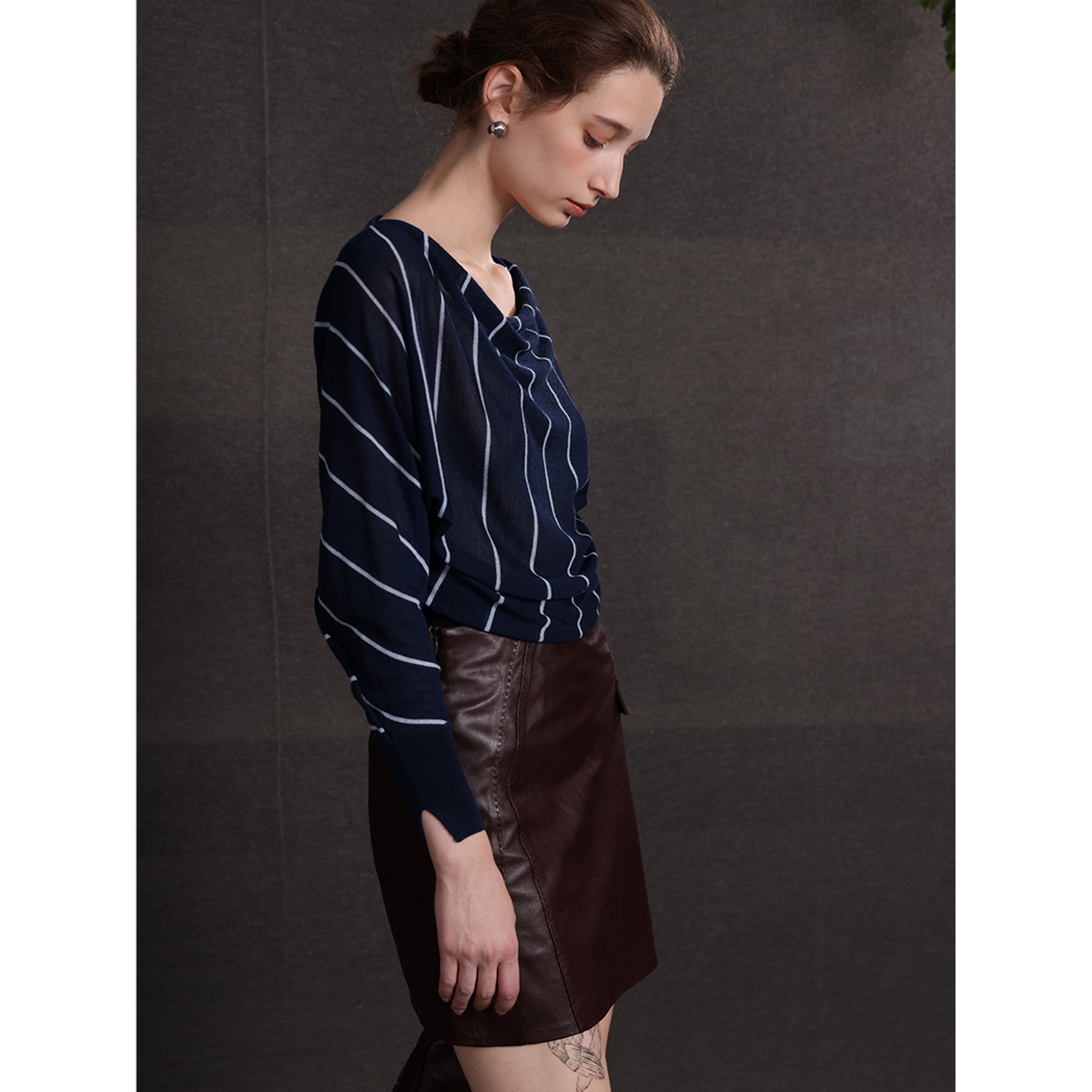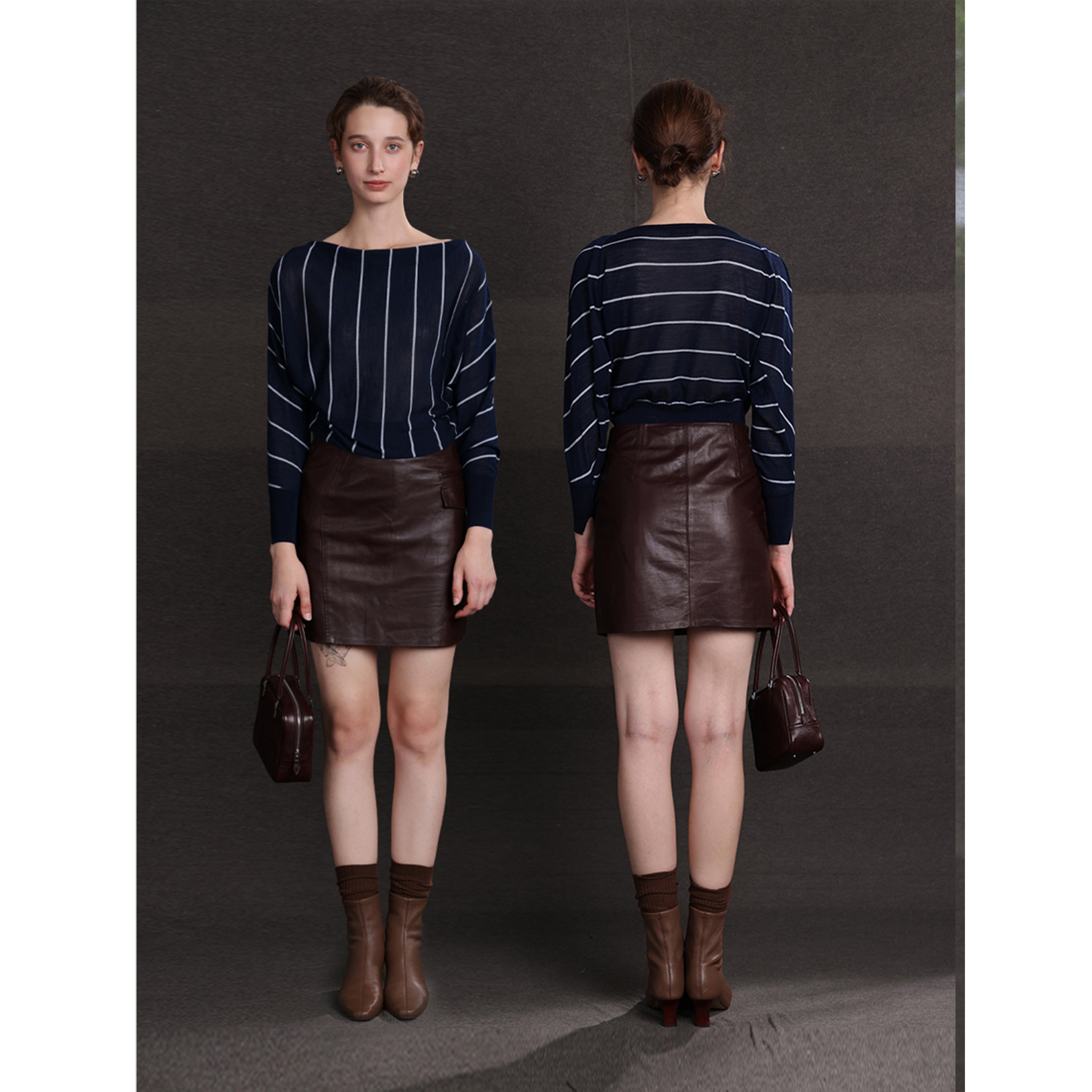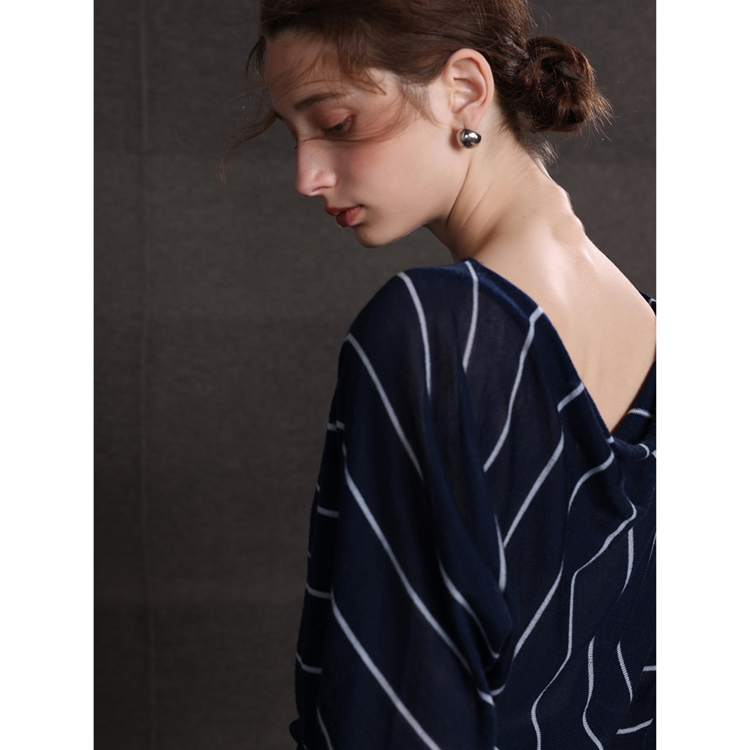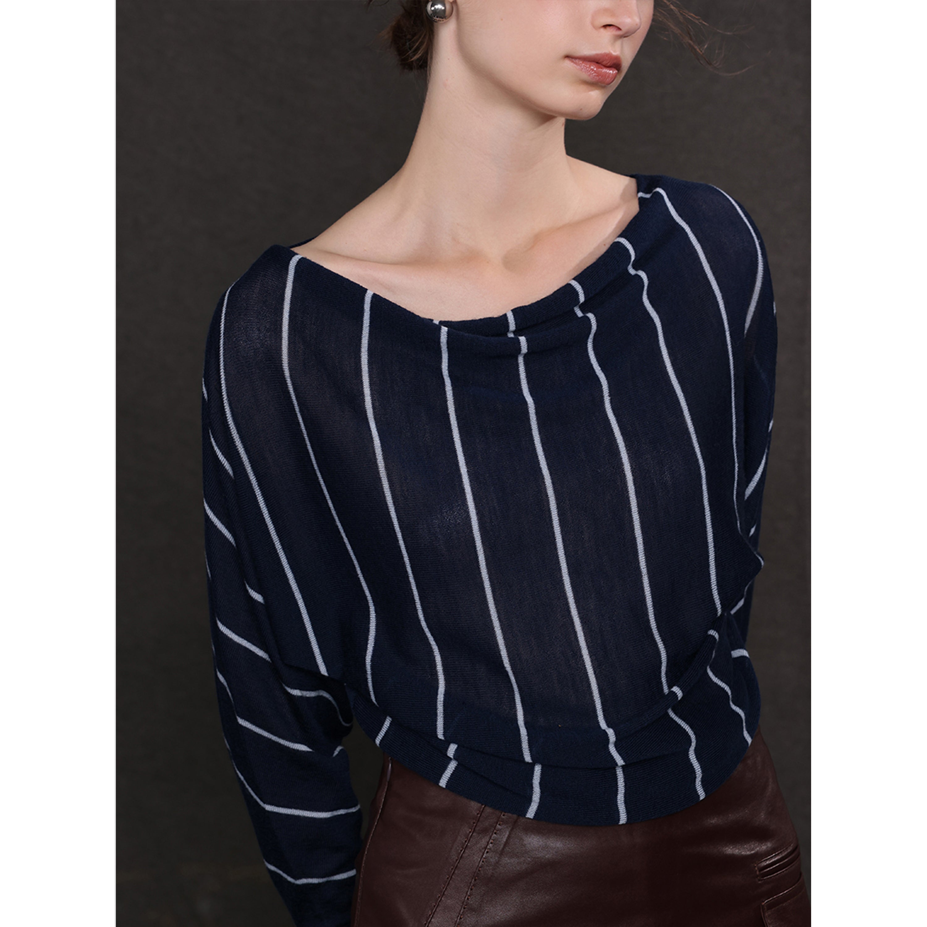 Item No.: MSCJY0775 Neckline: Off shoulder Neckline Sleeve Length: Long Sleeve Fit Type: Loose Fit Fabric: 48NM/2 Washable Sheep Wool Design Details: Classic Striped Style