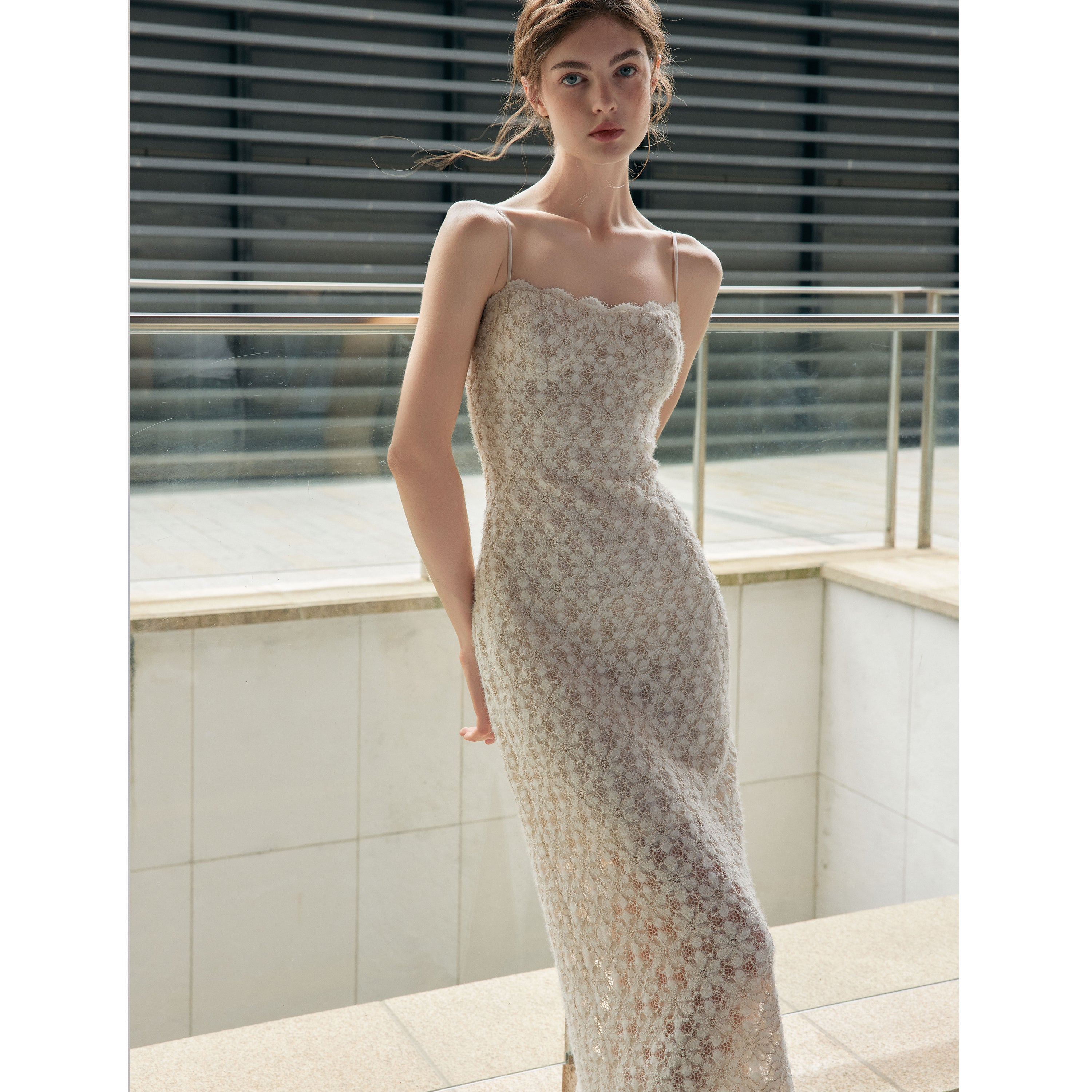 Romantic Lace French Luxury Dress with Spaghetti Strap