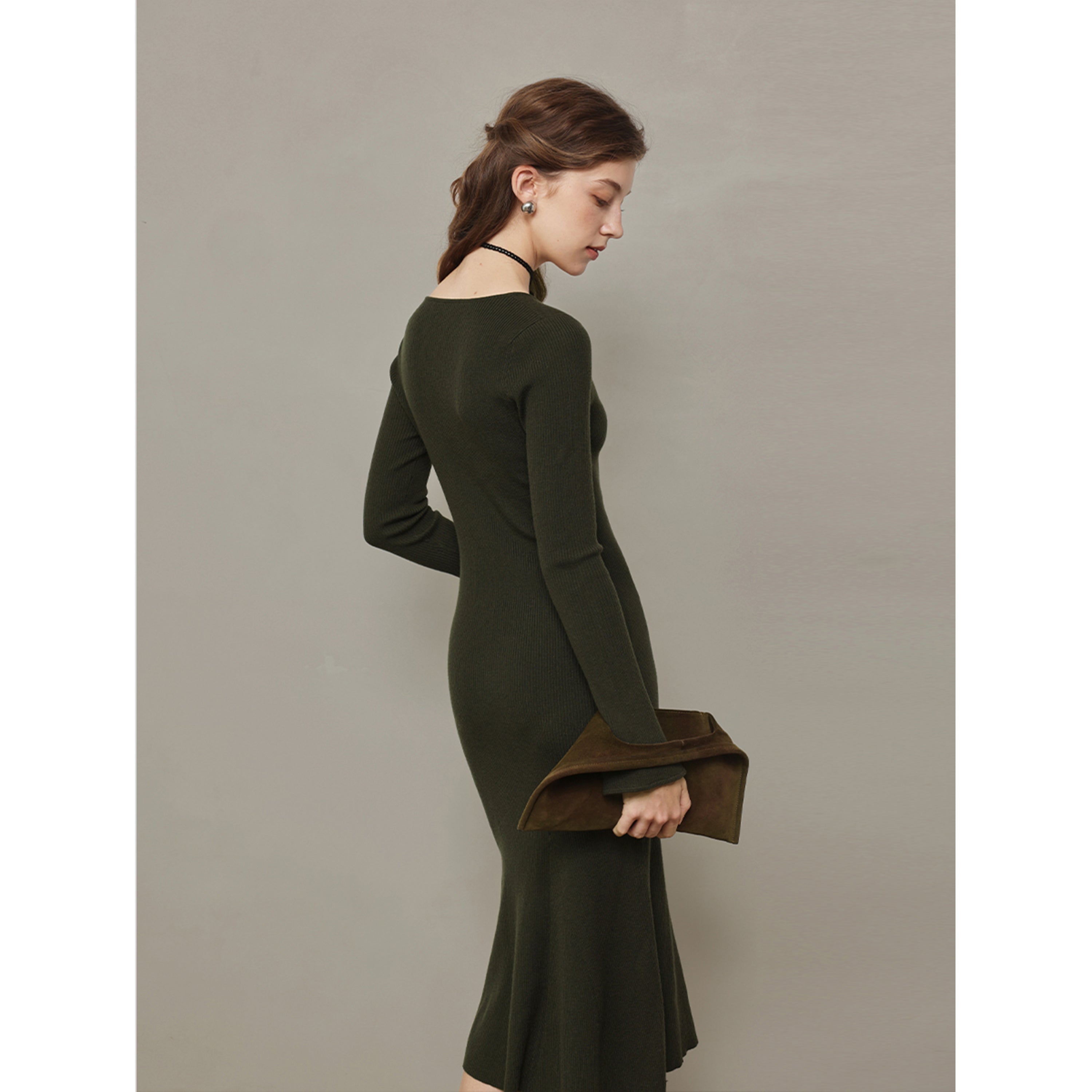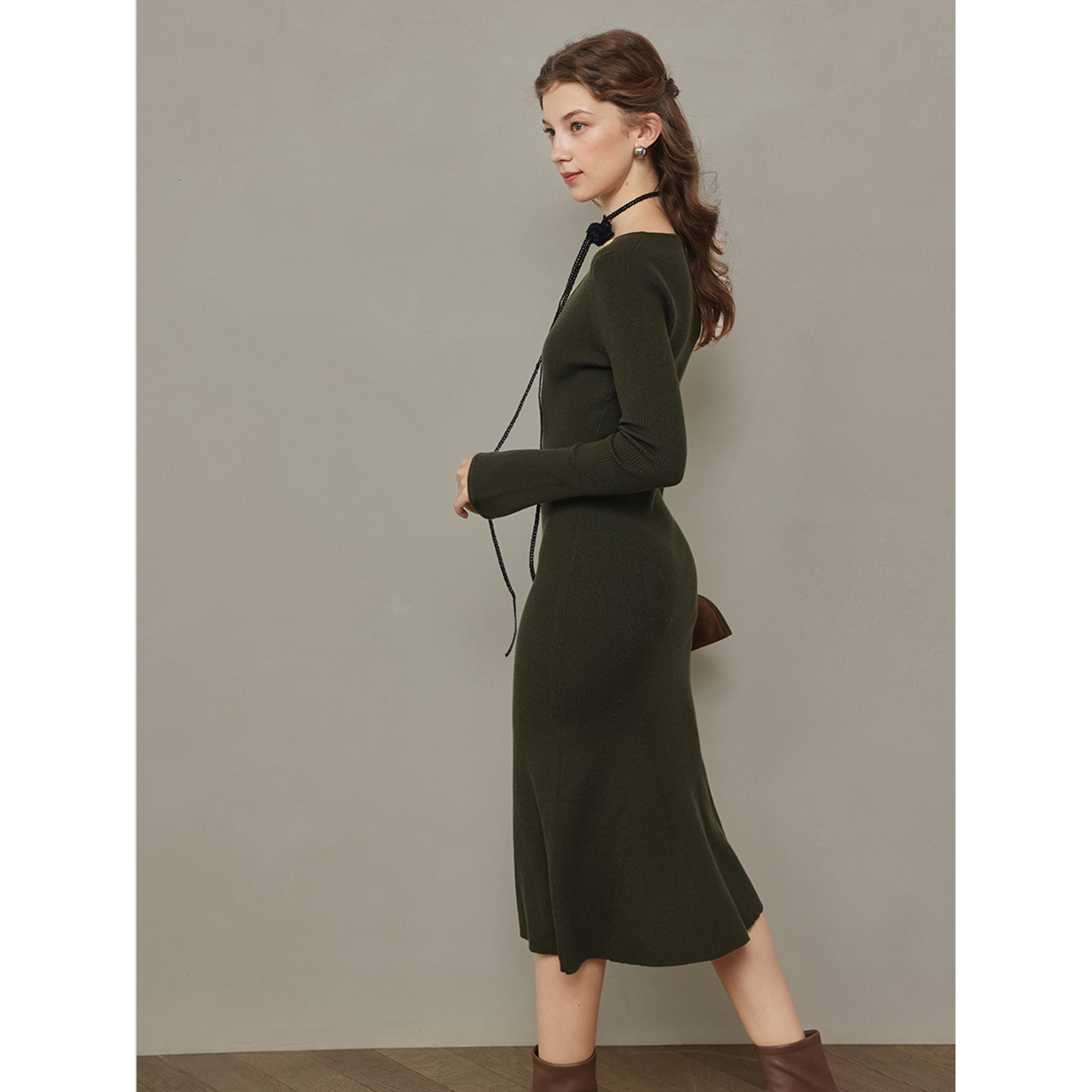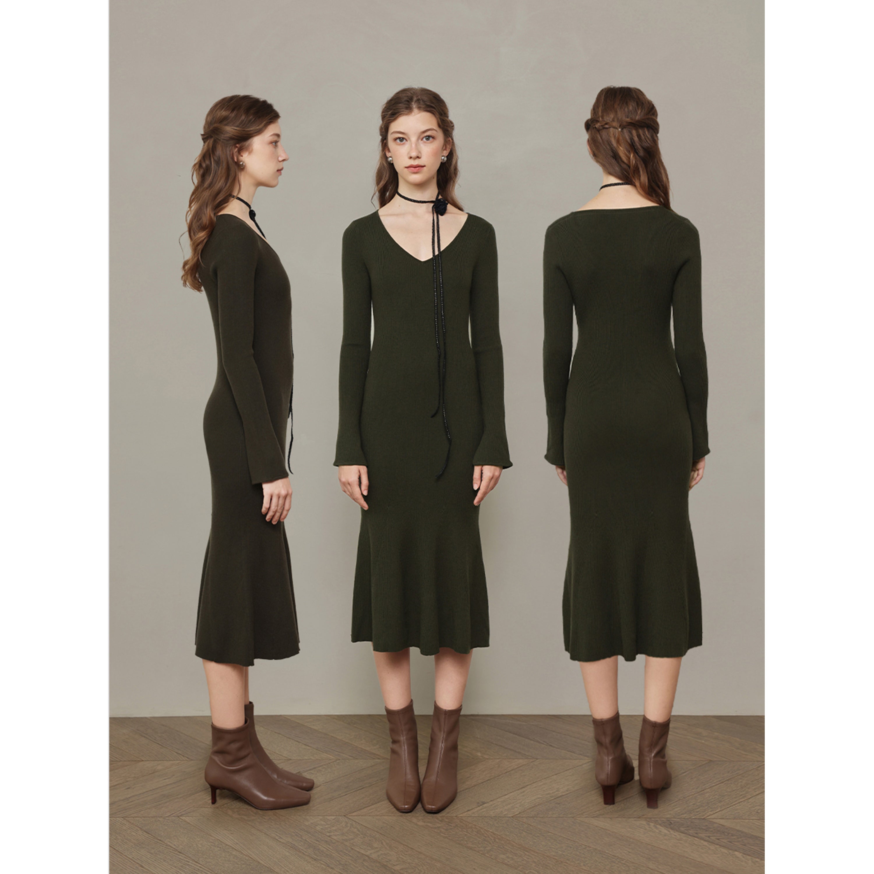 Worsted Wool Knit Dress with Floral Ribbon & Mermaid-Hemd