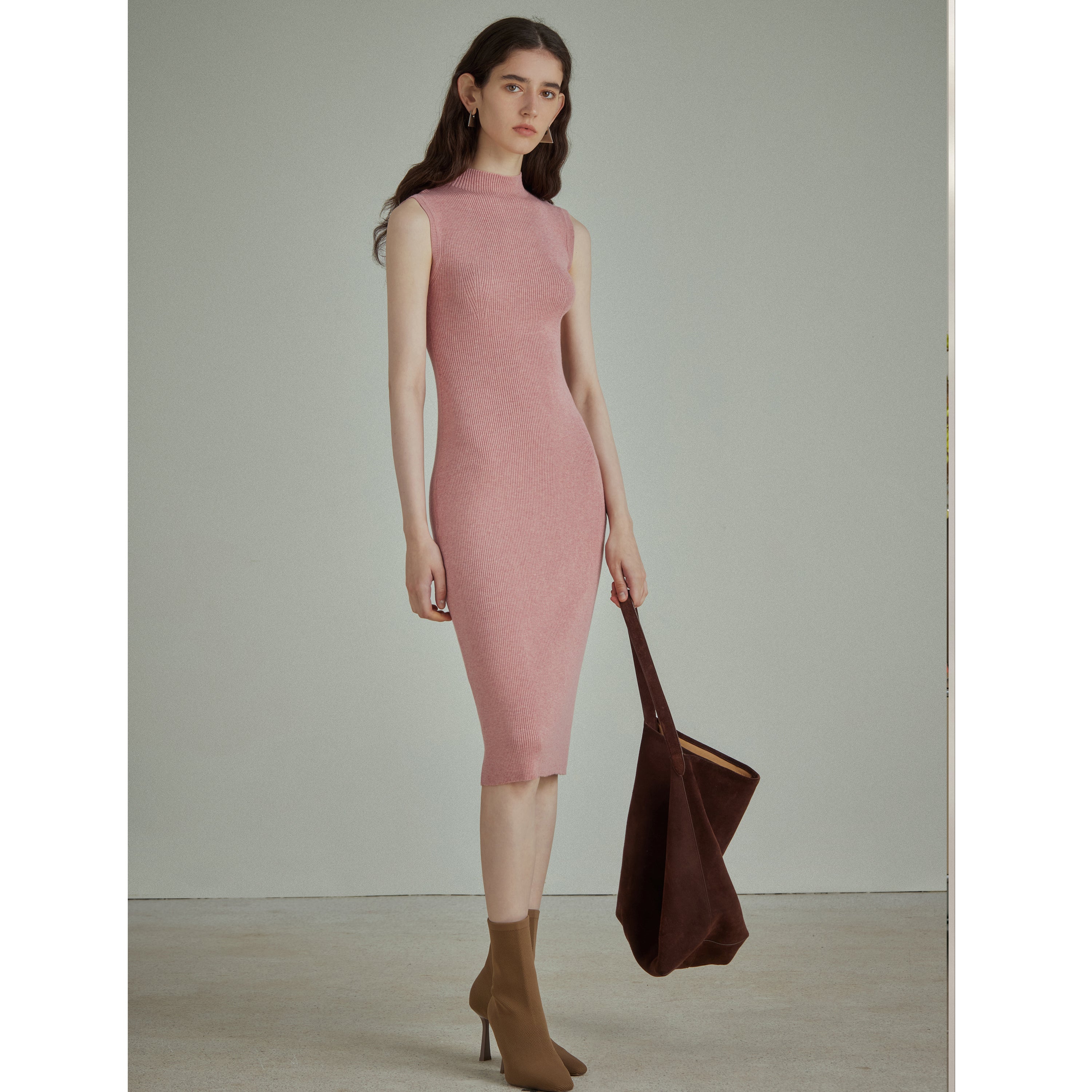 Mock Neck Slim-Fit French Luxury Knitted Dress