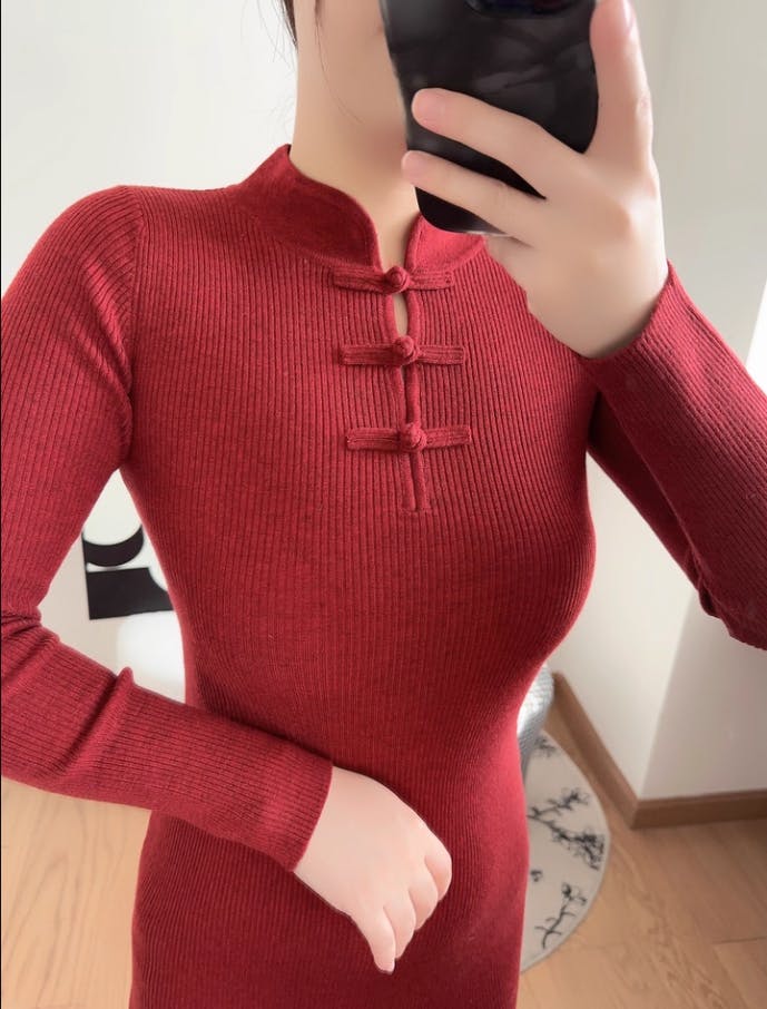 Oriental Collar – Mandarin stand collar with half-placket Chinese knot button, highlights grace and heritage style.|