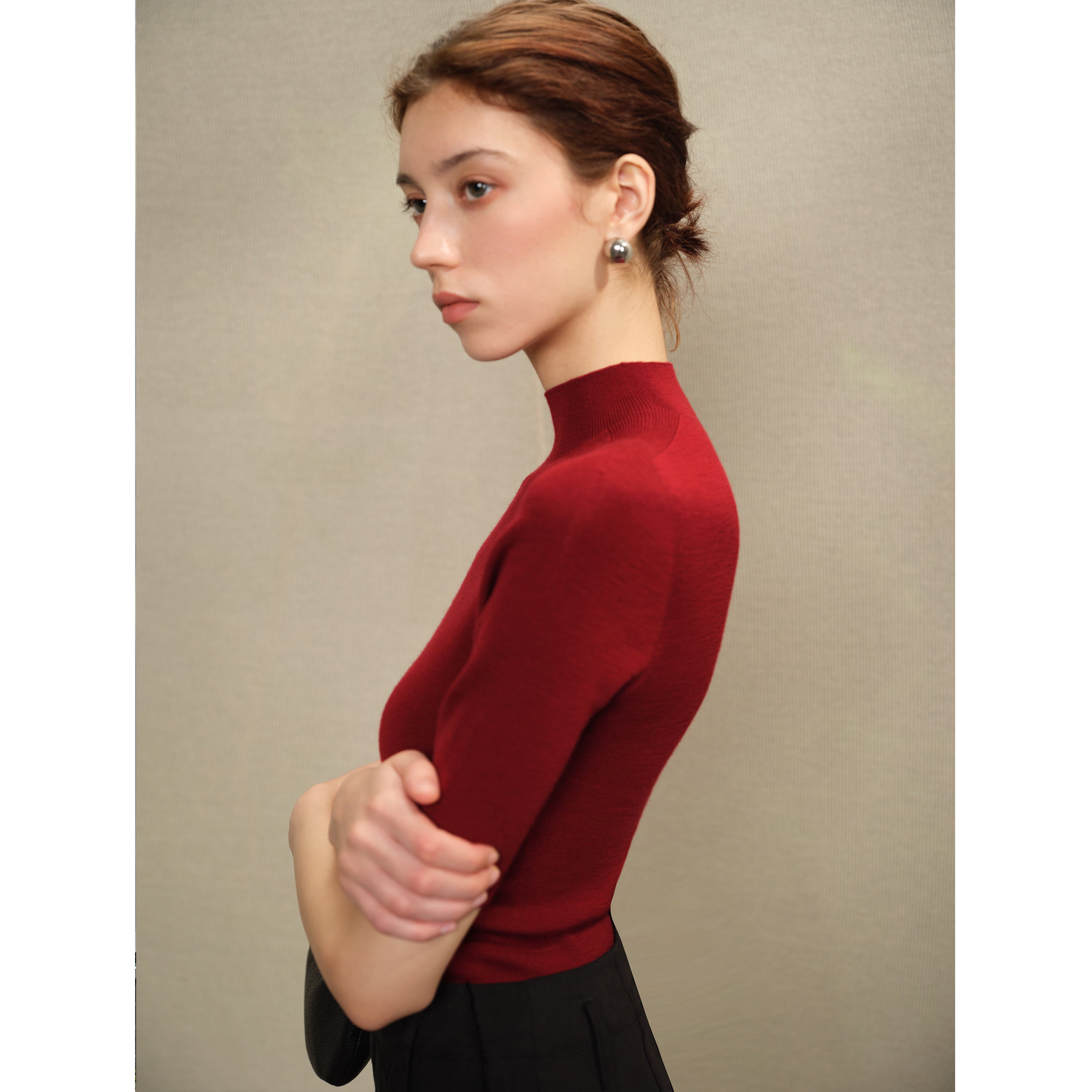 Item No.: MSGCJY0668Neckline: Mock NeckSleeve Length: Mid-length Sleeve Fit Type: Slim Fit Yarn: 2/48 NM Xinao Merino Wool YarnDesign Details: Versatile Base