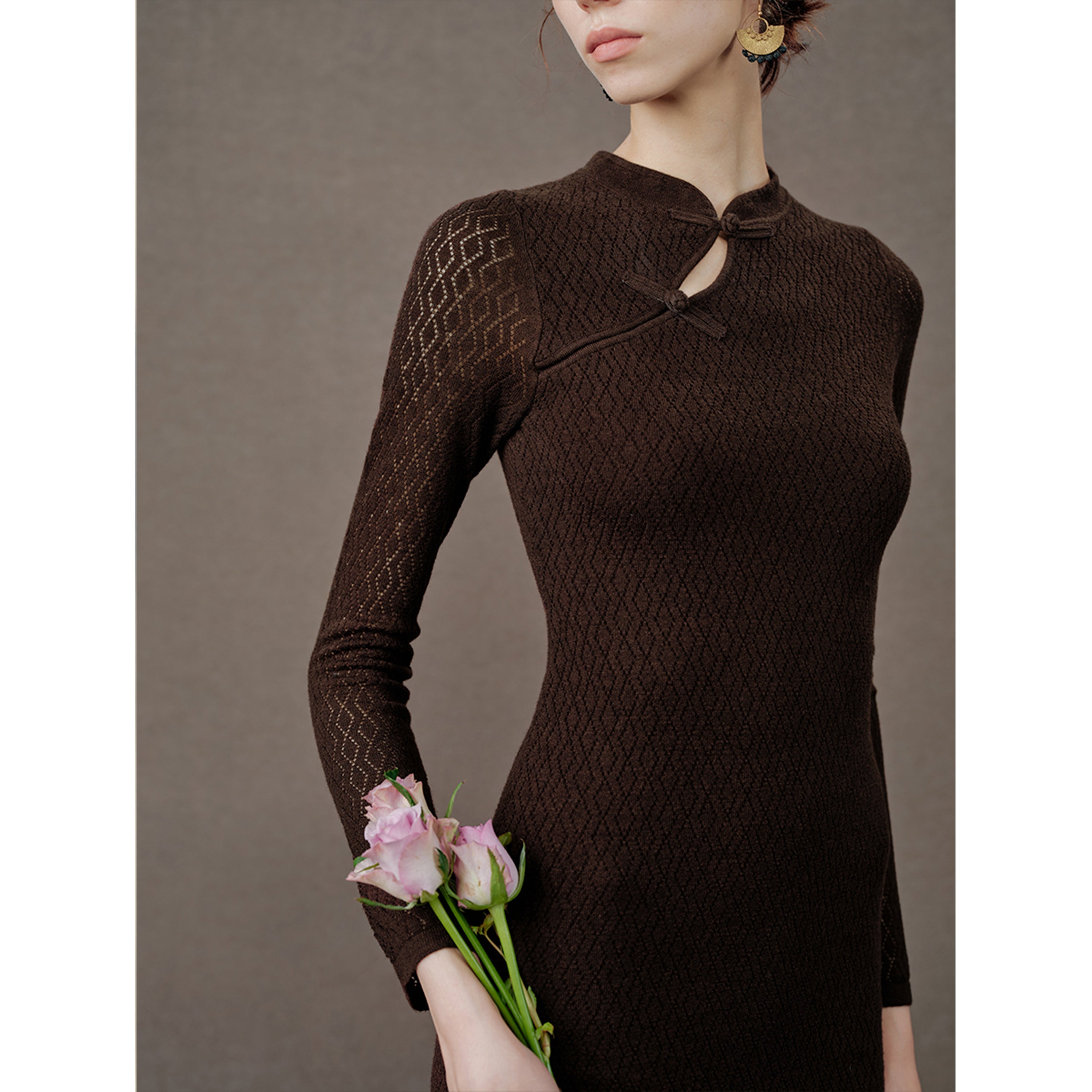 Cheongsam-Inspired Details: The mandarin collar and diagonal frog buttons bring a cultural sophistication with modern appeal.