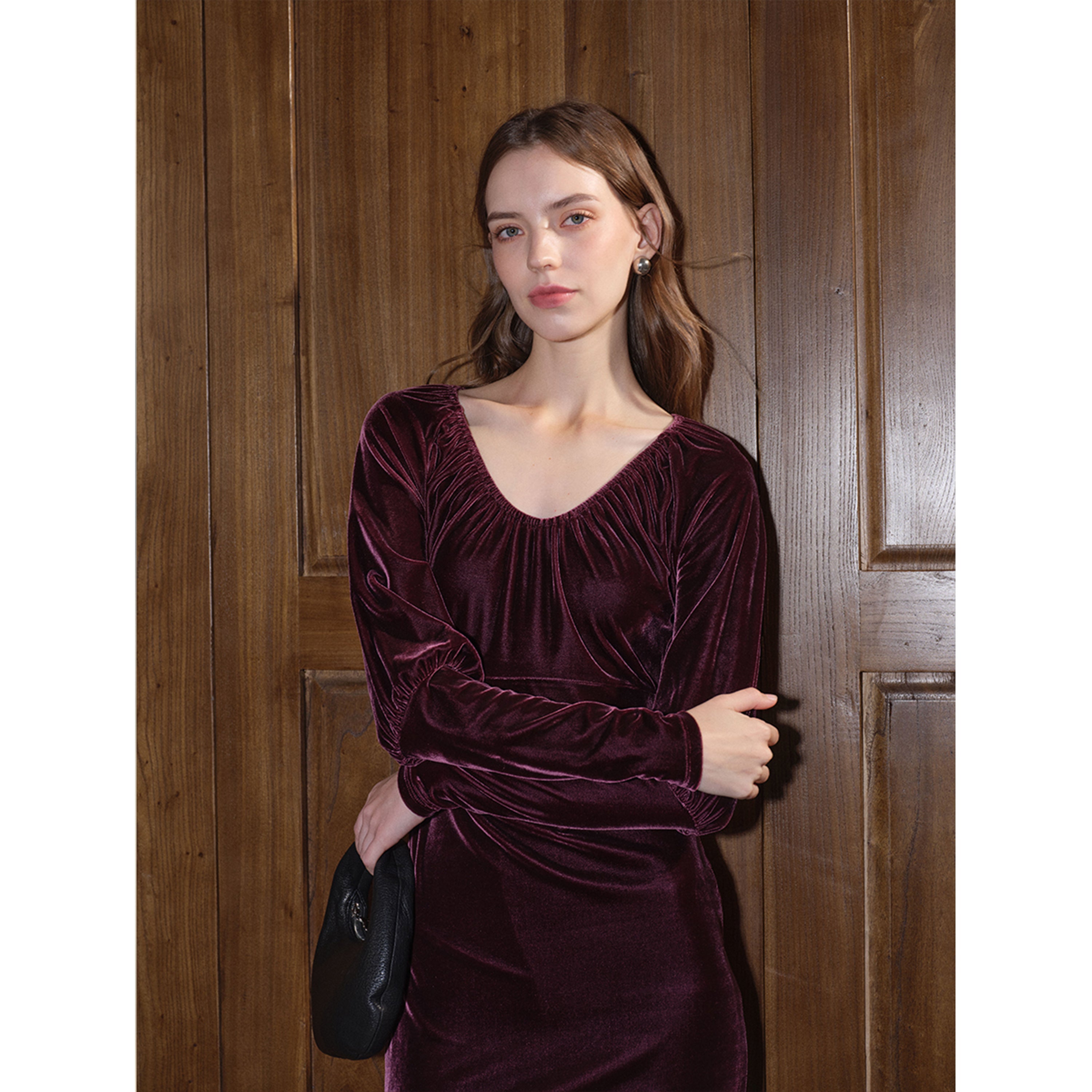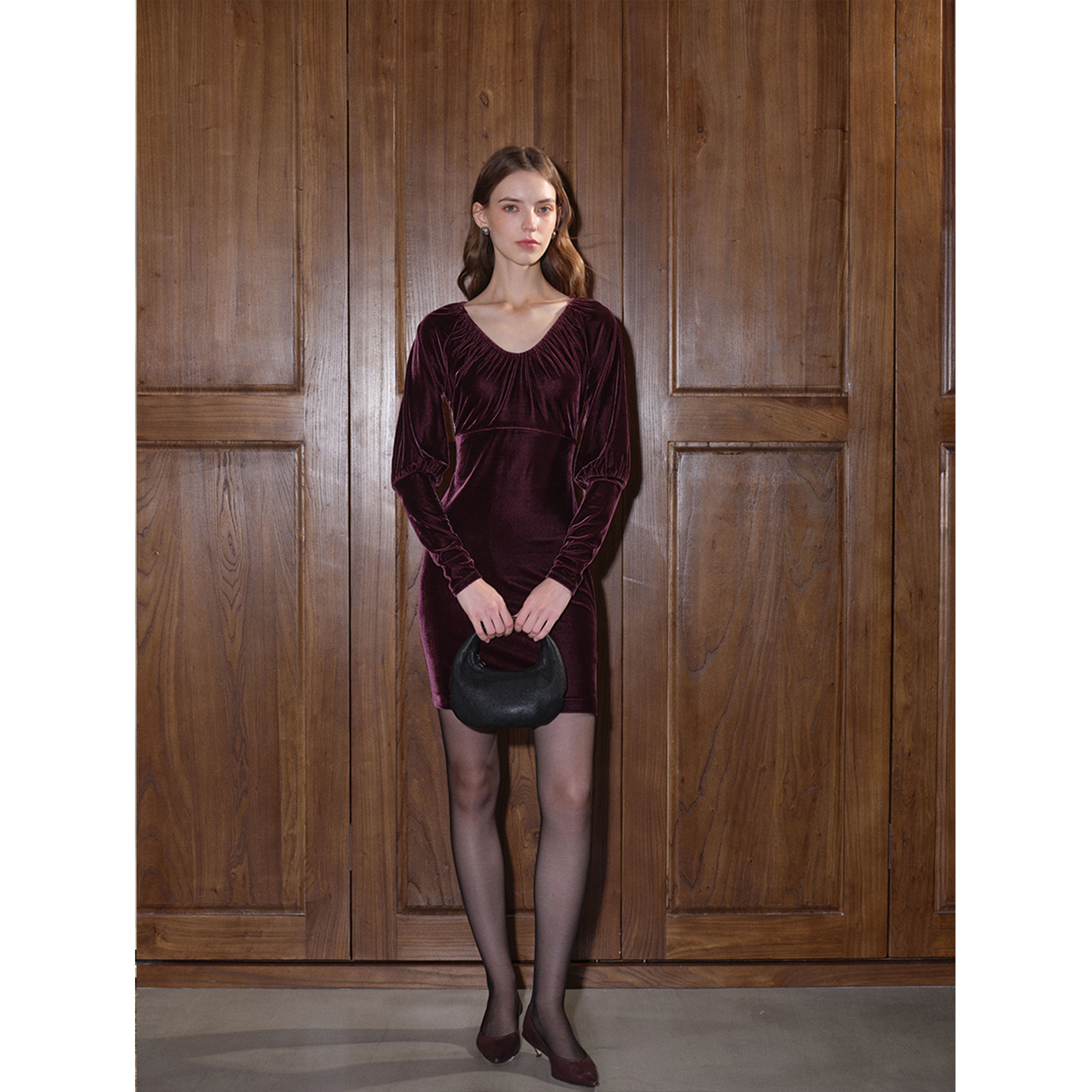 Stretch Velvet V-Neck Bodycon Dress