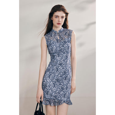 Breathable Fabric: premium dual-tone lace in deep and light blue highlights, floral motifs with cotton blend—soft, breathable, and ideal for summer wedding guest dresses or vacation outfits.